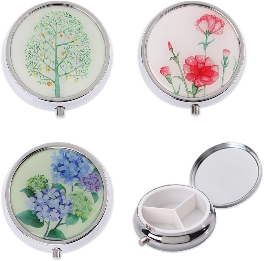 3 عبوات من علب حبوب الدواء من Maigendoo، منظم دوائي دائري، حافظة حبوب منع الحمل اليومية، حاوية تخزين الأدوية المدمجة، حافظات حامل السفر المحمولة للحبوب/زيت السمك/الفيتامينات/المكملات الغذائية، 3 أنماط