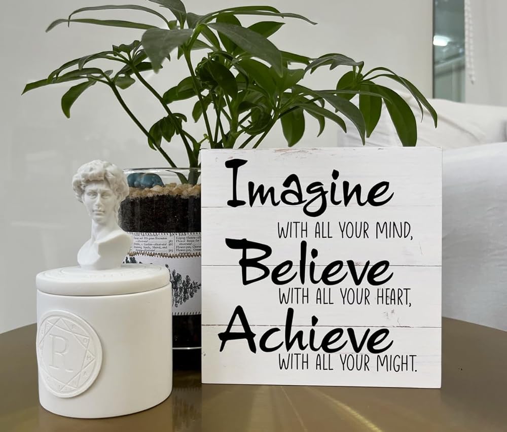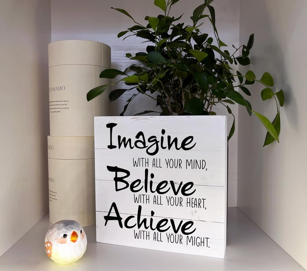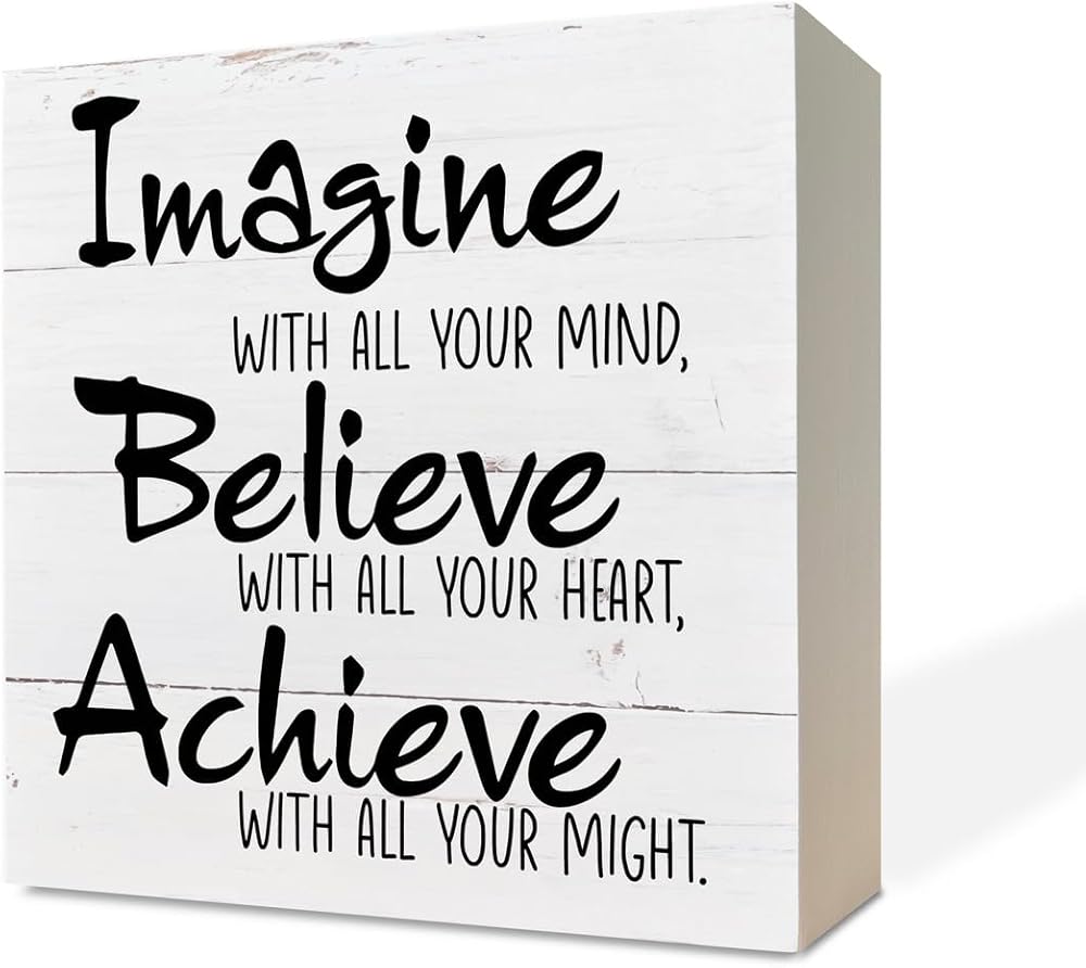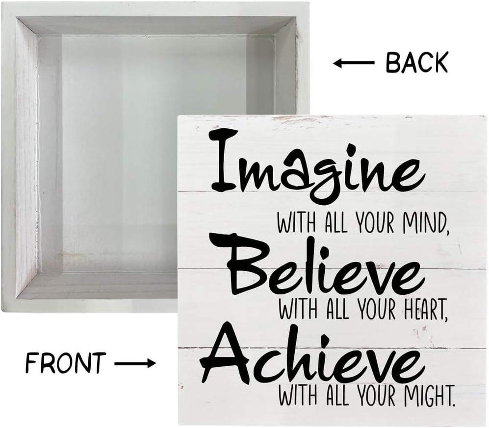 مظهر فريد: التصميم الريفي الجمالي يخلق زخرفة جميلة بسيطة ولكنها مصقولة، ومطبوعة باقتباس تحفيزي عالي الدقة. لافتة صندوق صغيرة مزخرفة مثالية لمكاتبك أو غرفة النوم أو غرفة الطعام أو غرفة المعيشة أو المطبخ