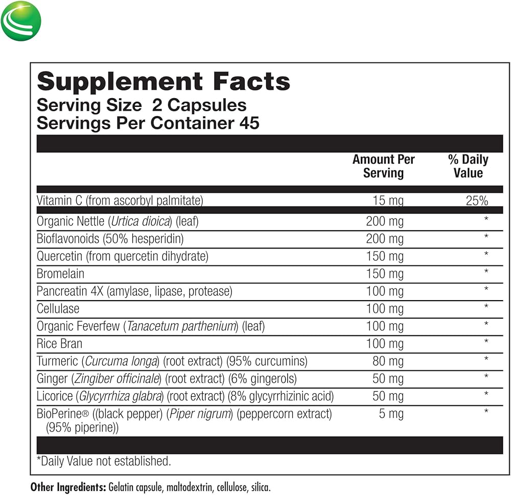 - يحتوي AlliHist Relief على مكونات مثل نبات القراص والكيرسيتين والحمى التي كانت موضوع بحث علمي لفوائدها المشهورة على صحة المناعة.