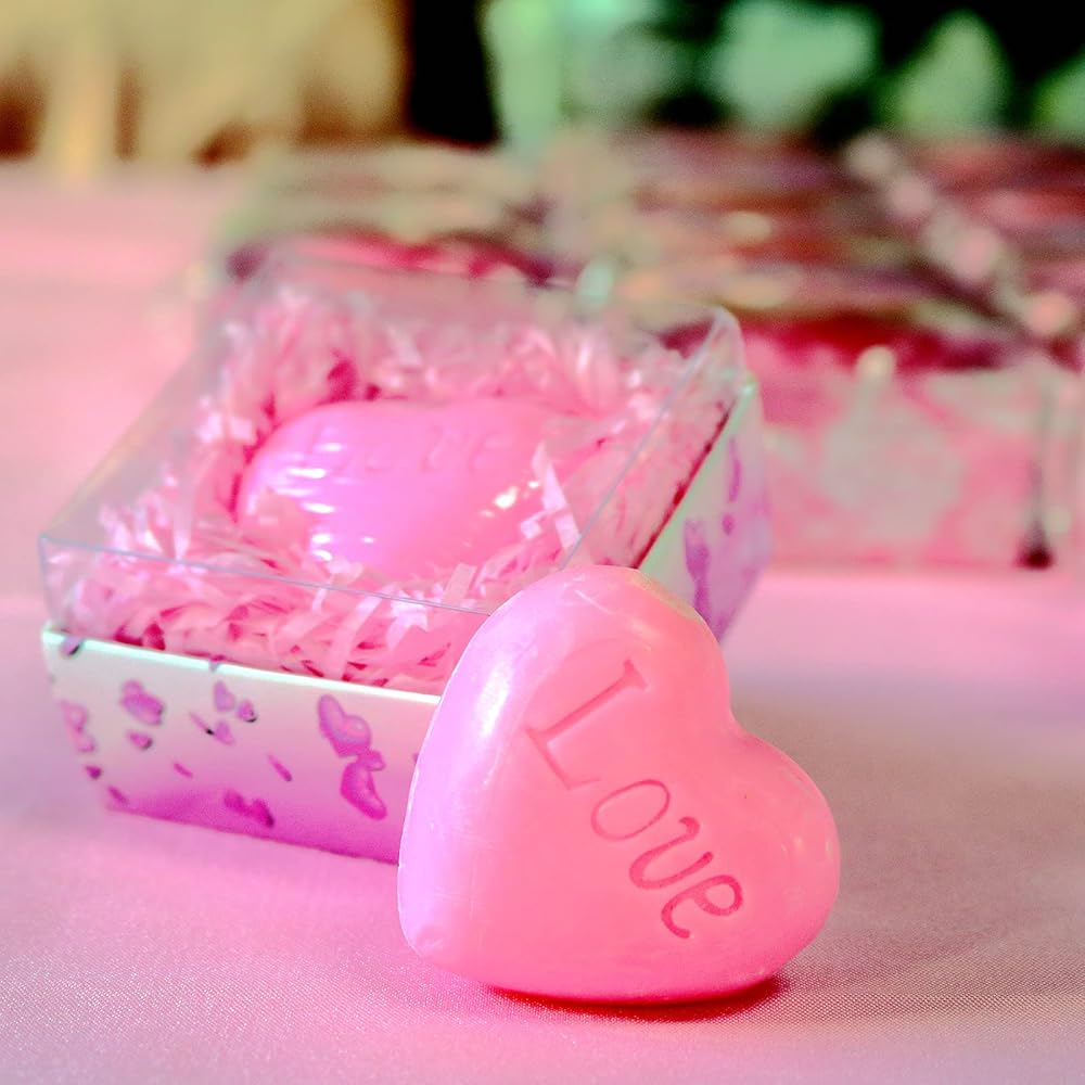 • ❤️【تتضمن العبوة】24 عبوة × صابون صغير لطيف مصنوع يدويًا على شكل قلب بلون بينك.