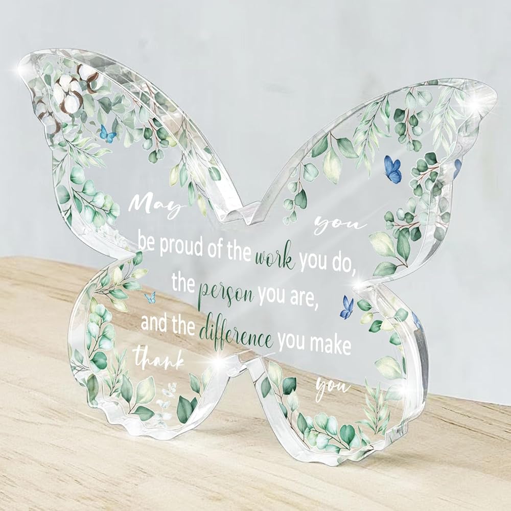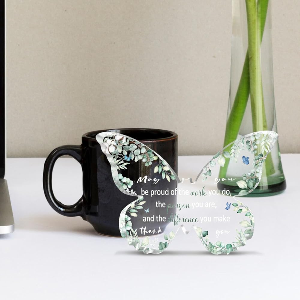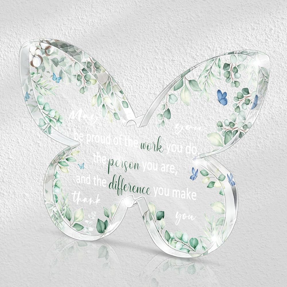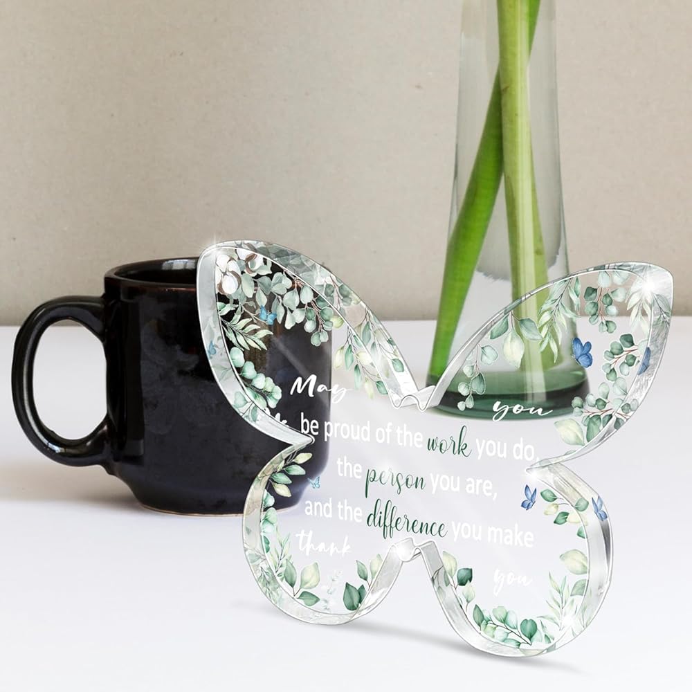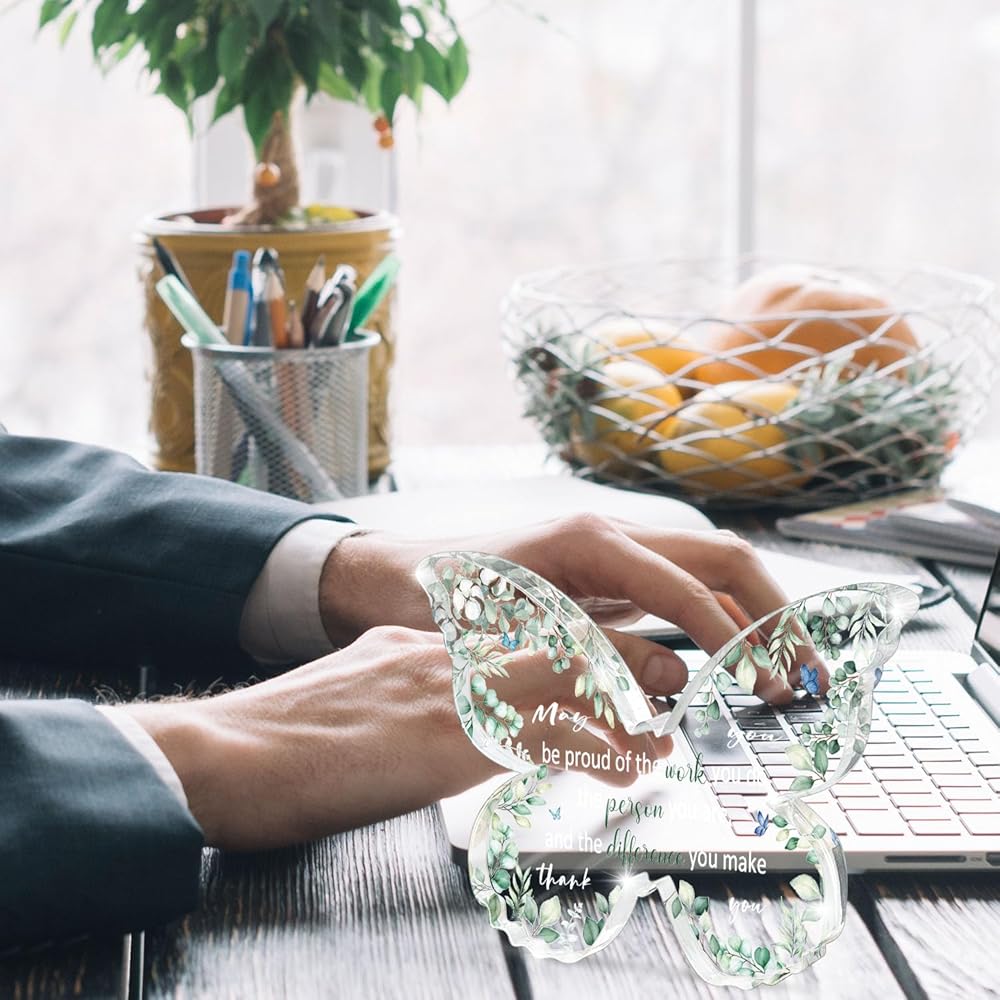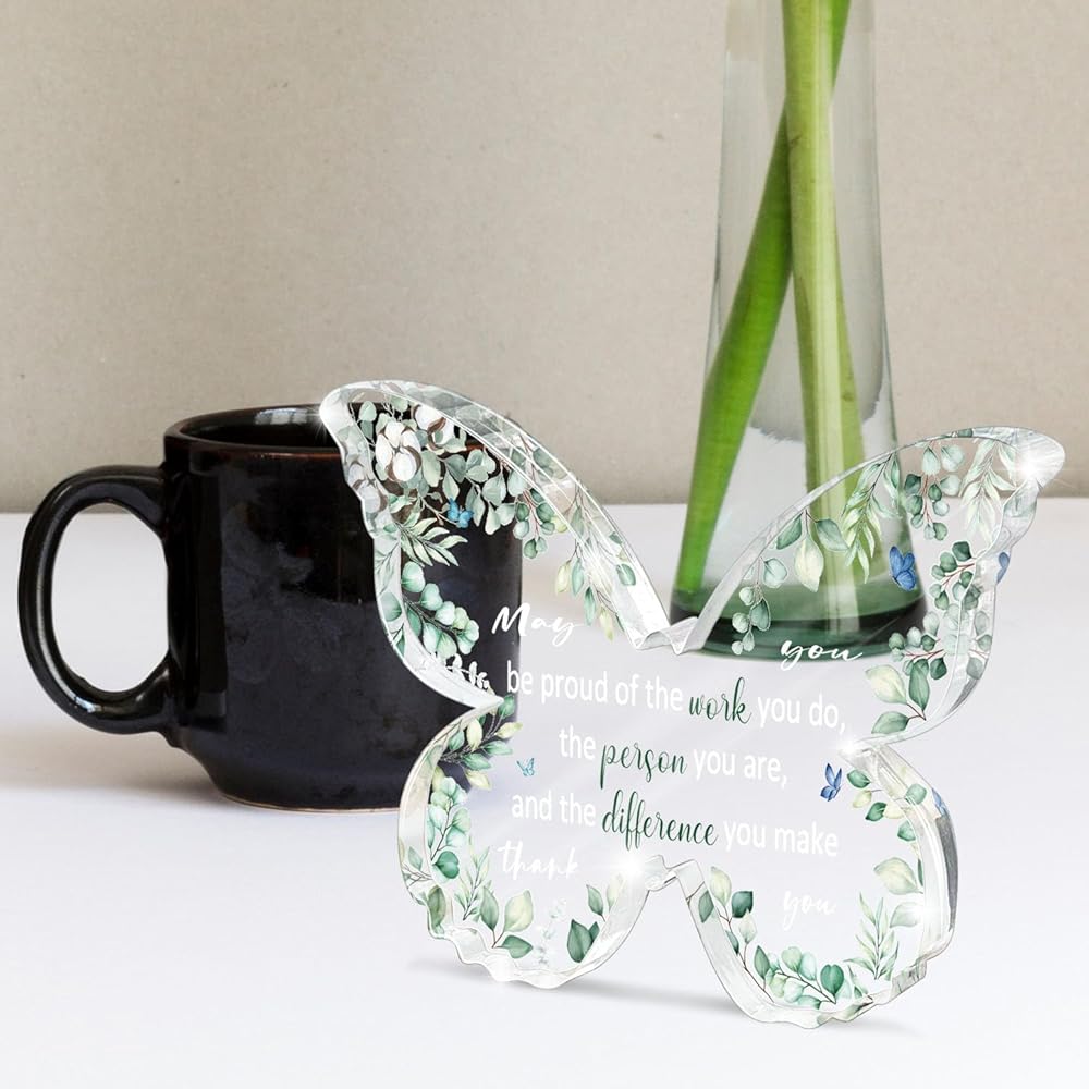 هدايا يوم الرئيس، هدية زميل العمل - هدية لافتة أكريليك على شكل فراشة مع رسالة ملهمة - هدية تقدير لتفخر بالعمل الذي تقوم به - علامة ديكور مكتبية شفافة للمكتب المنزلي (أخضر)