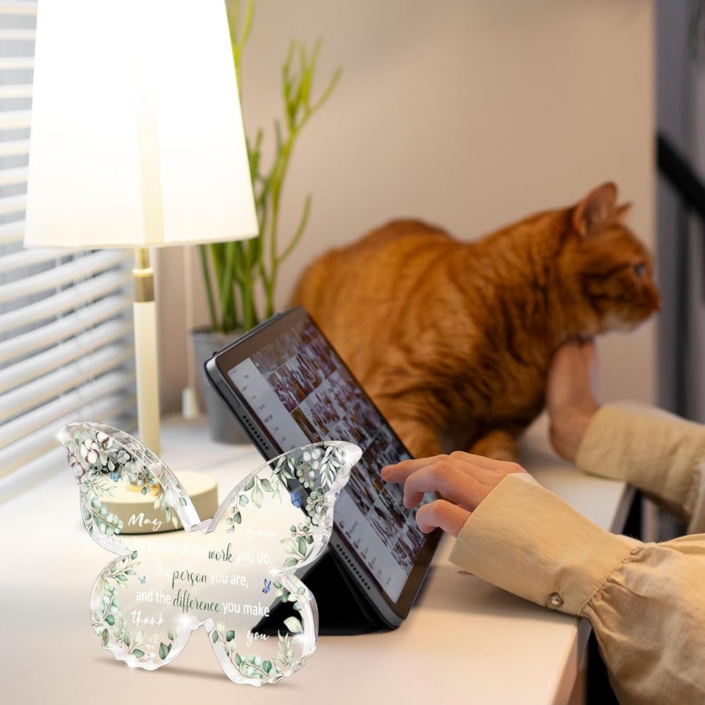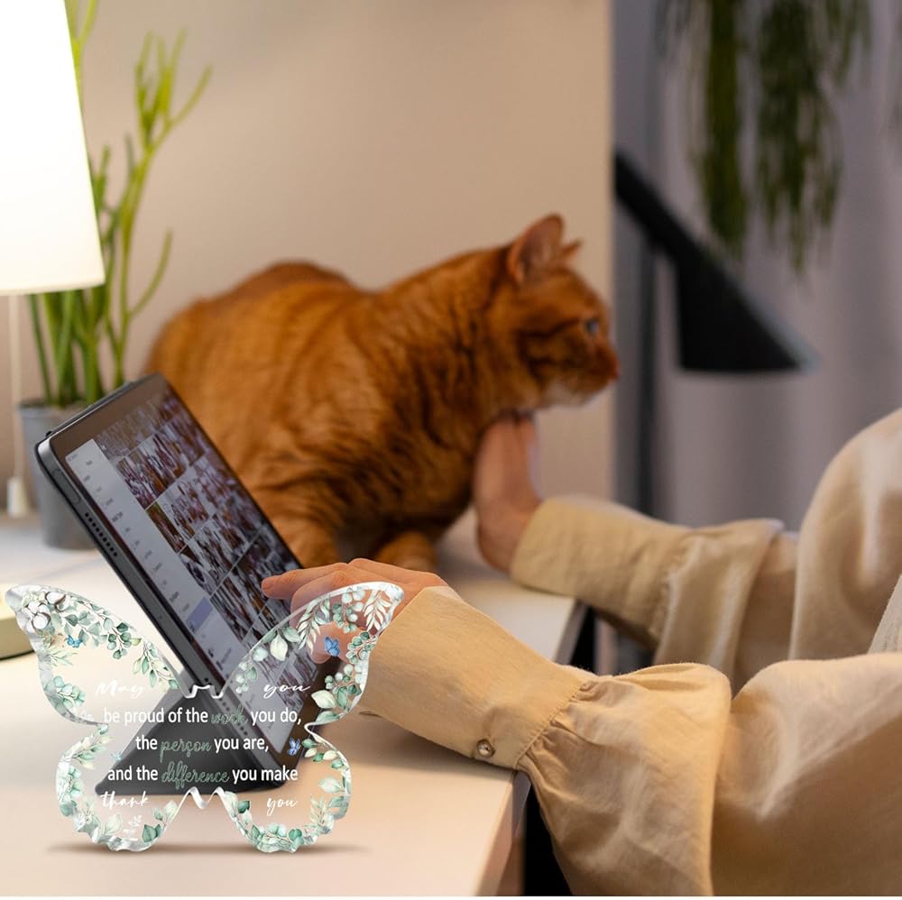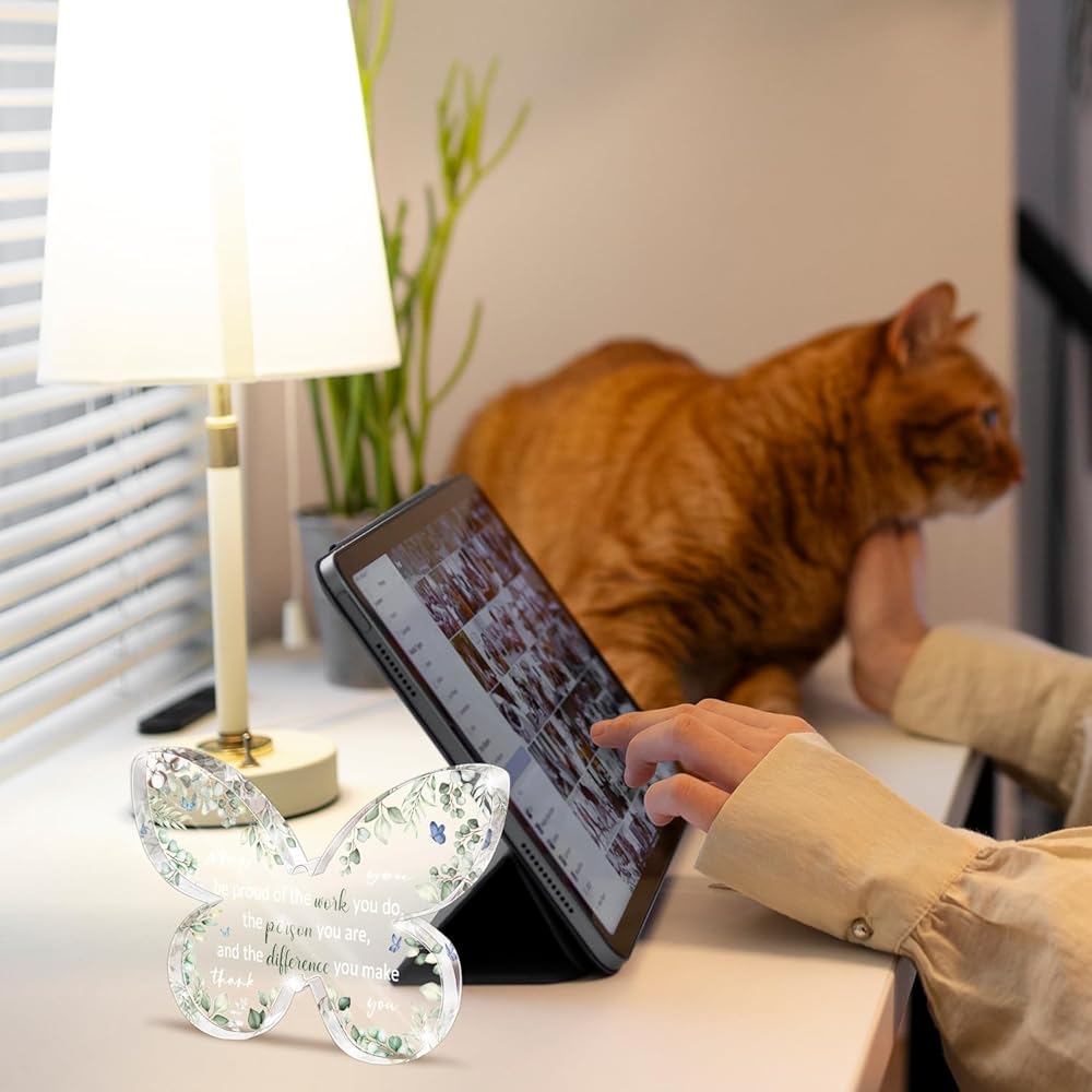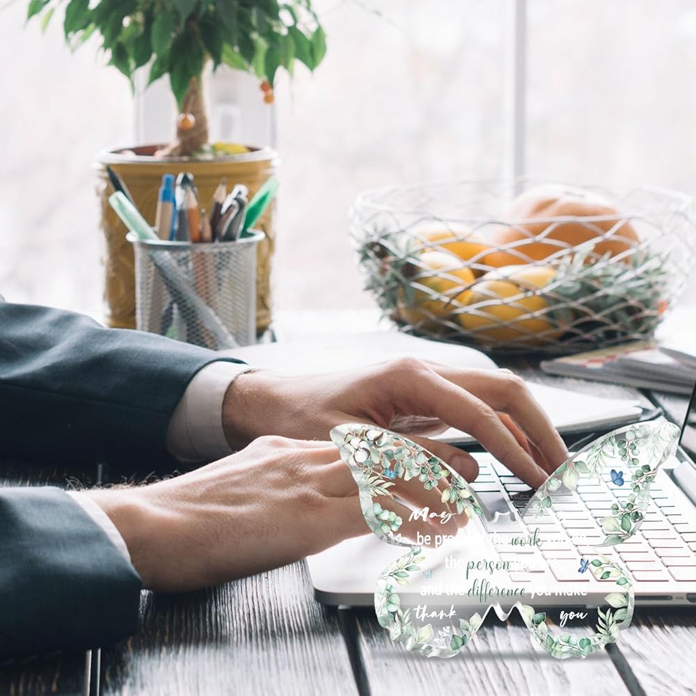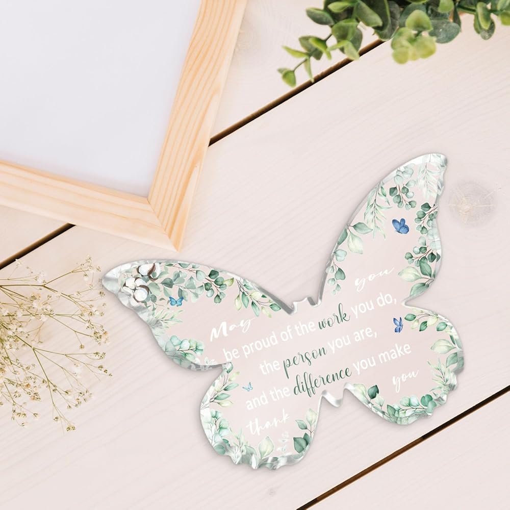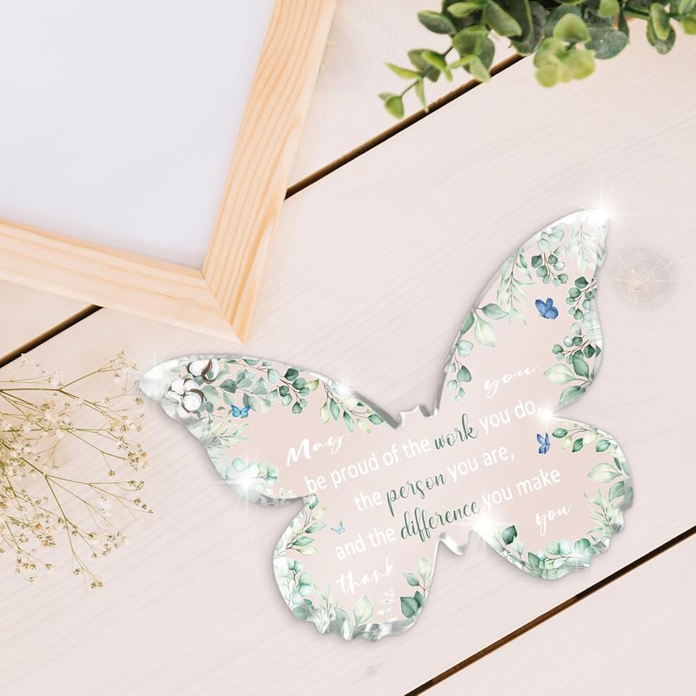 هدايا يوم الرئيس، هدية زميل العمل - هدية لافتة أكريليك على شكل فراشة مع رسالة ملهمة - هدية تقدير لتفخر بالعمل الذي تقوم به - علامة ديكور مكتبية شفافة للمكتب المنزلي (أخضر)