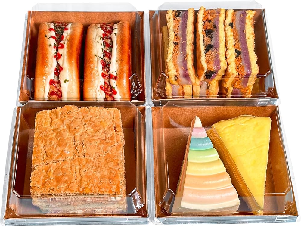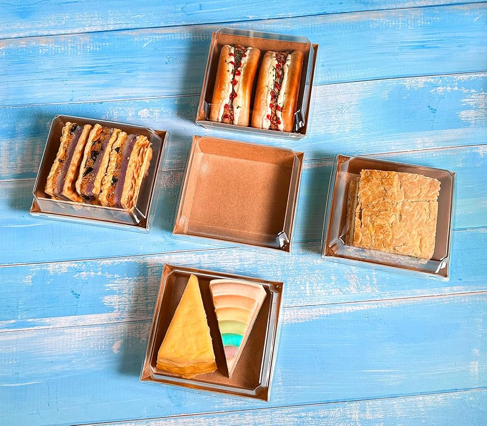 Easy to assemble: These square cake containers are ready to use all the time, suitable for slice cake, sandwich, sushi rolls, pastries, salads, fruits, cookies, chocolate bombs, chocolate covered strawberries,etc, fill it with anything what you want!