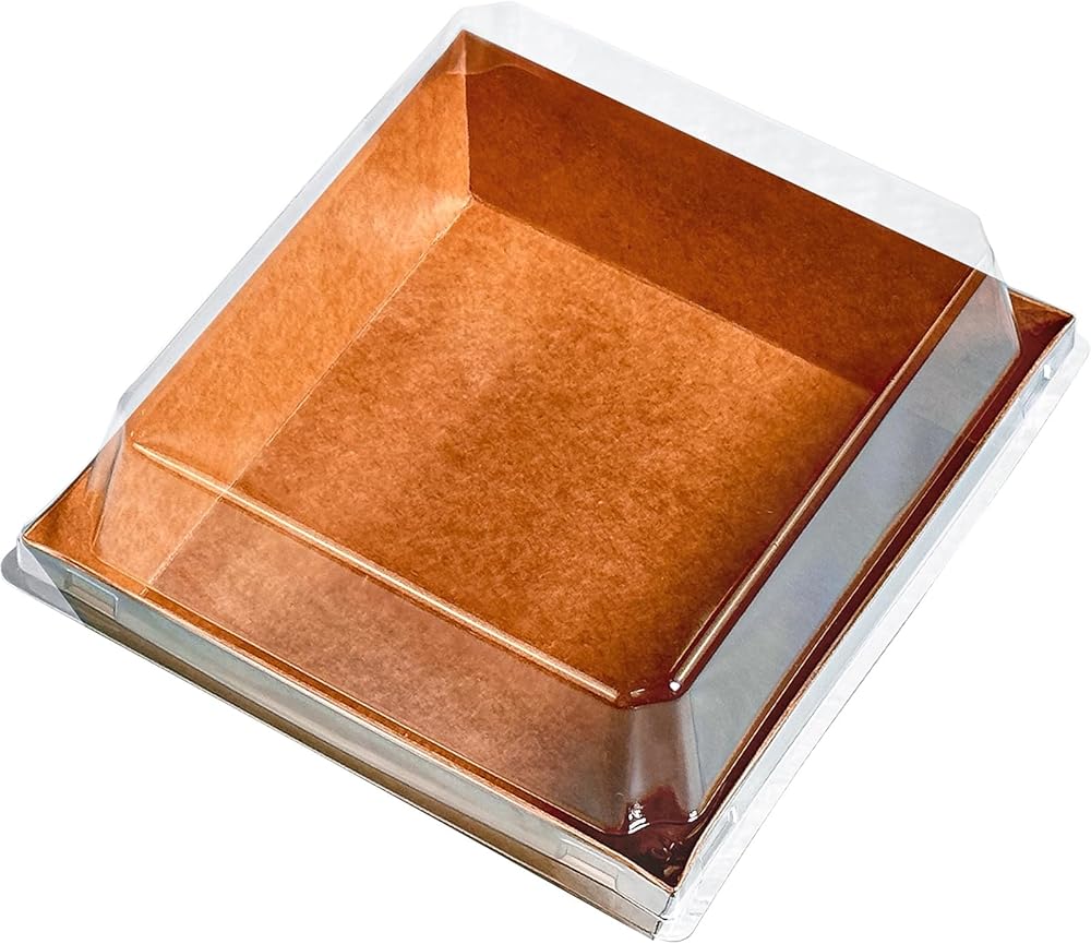 Size: measuring 5.45 x 5 x 2.5 inches/13.8cm x 12.7cm x 6.3cm , Paper contianer bottom measurement:4.75inch x 4.45inch/12cm x 11.3cm.Enough for your daily use.The charcuterie box is made of sturdy cardboard and the lid is made of PET plastic, recyclable and durable for direct contact with food.You can use it with confidence.These square cake containers are ready to use all the time, suitable for slice cake, sandwich, sushi rolls, pastries, salads, fruits, cookies, chocolate bombs, chocolate covered strawberries,etc, fill it with anything what you want!