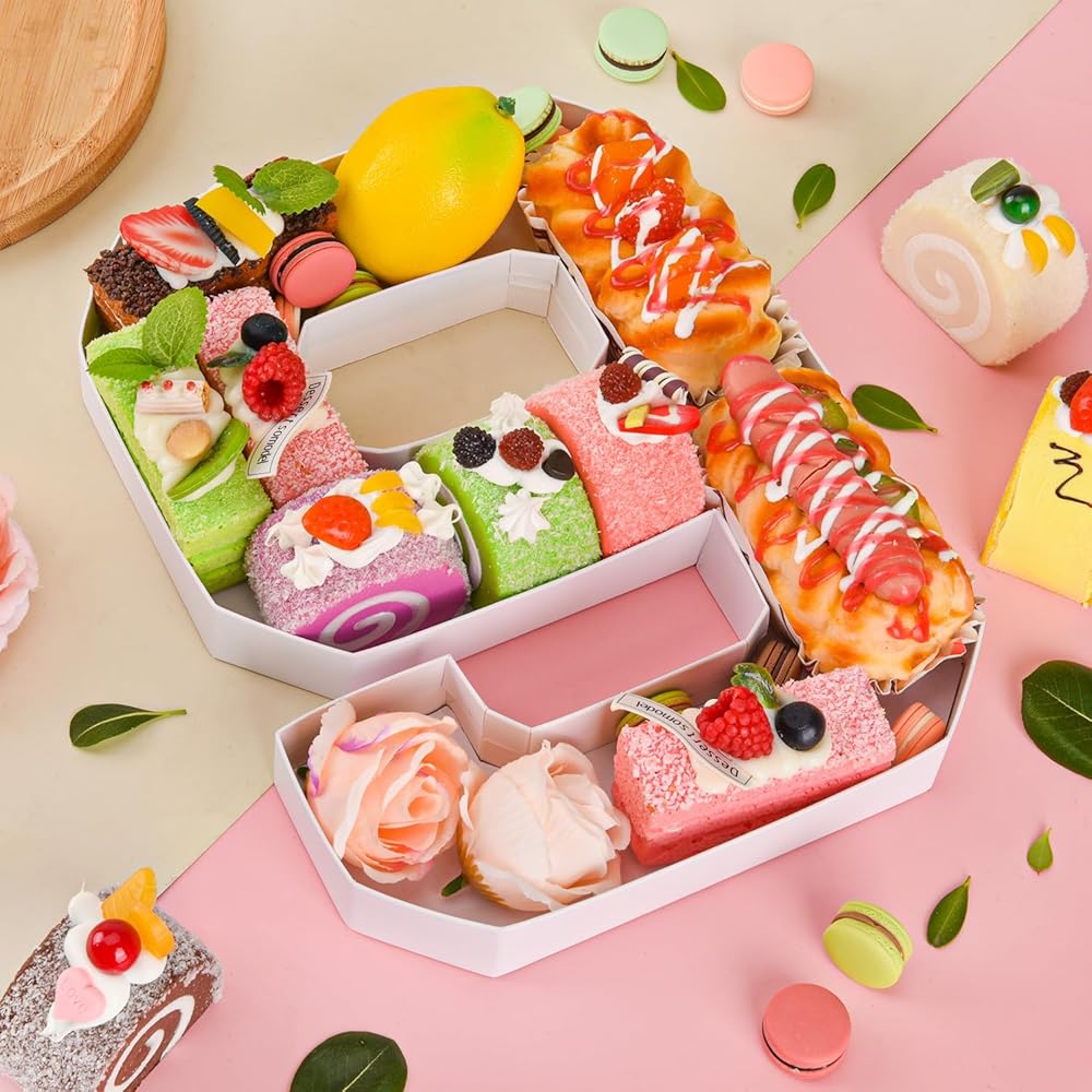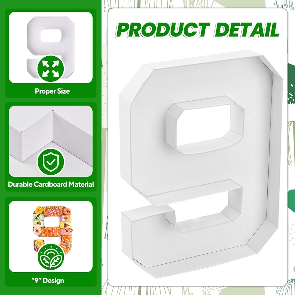 • تصميم الحروف: تم تصميم صينية الورق المقوى المكونة من 9 قطع بشكل أرقام كلاسيكي، إبداعية وعملية، ومناسبة لوضع الطعام أو الفواكه أو الزهور، ويمكن أيضًا تعبئتها كصندوق هدايا عيد ميلاد، وديكورات الحفلات والهدايا.