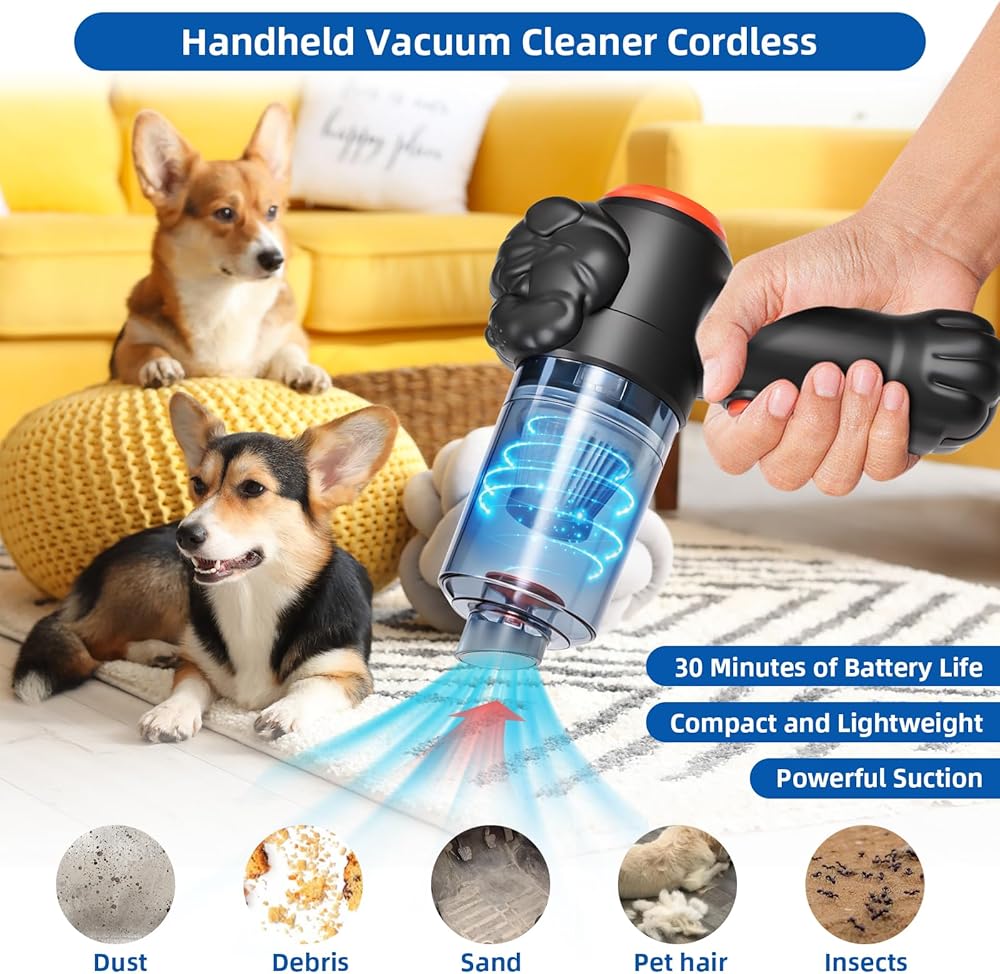 • High Power Performance: Featuring a 120W motor and a 4000mAh rechargeable battery, the handheld vacuum cordless rechargeable model delivers exceptional performance. It absorb dust, crumbs, sand, pet hair, insects, and even water spills. With up to 30 minutes of use on a single charge and a fast 3-hour recharge time, this vacuum cleaner for car and home is reliable and efficient