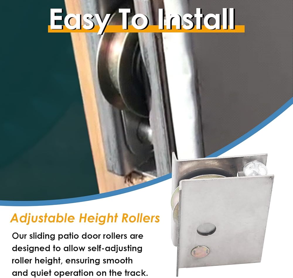 【Adjustable Height Rollers】If your door is difficult to move, constantly getting stuck, or making loud noises when opening and closing, it may be time to replace the rollers. Our sliding glass door rollers feature steel ball bearings to prevent jamming. Additionally, adjusting the height of the rollers can be easily done with just a Phillips screwdriver, making installation a breeze.