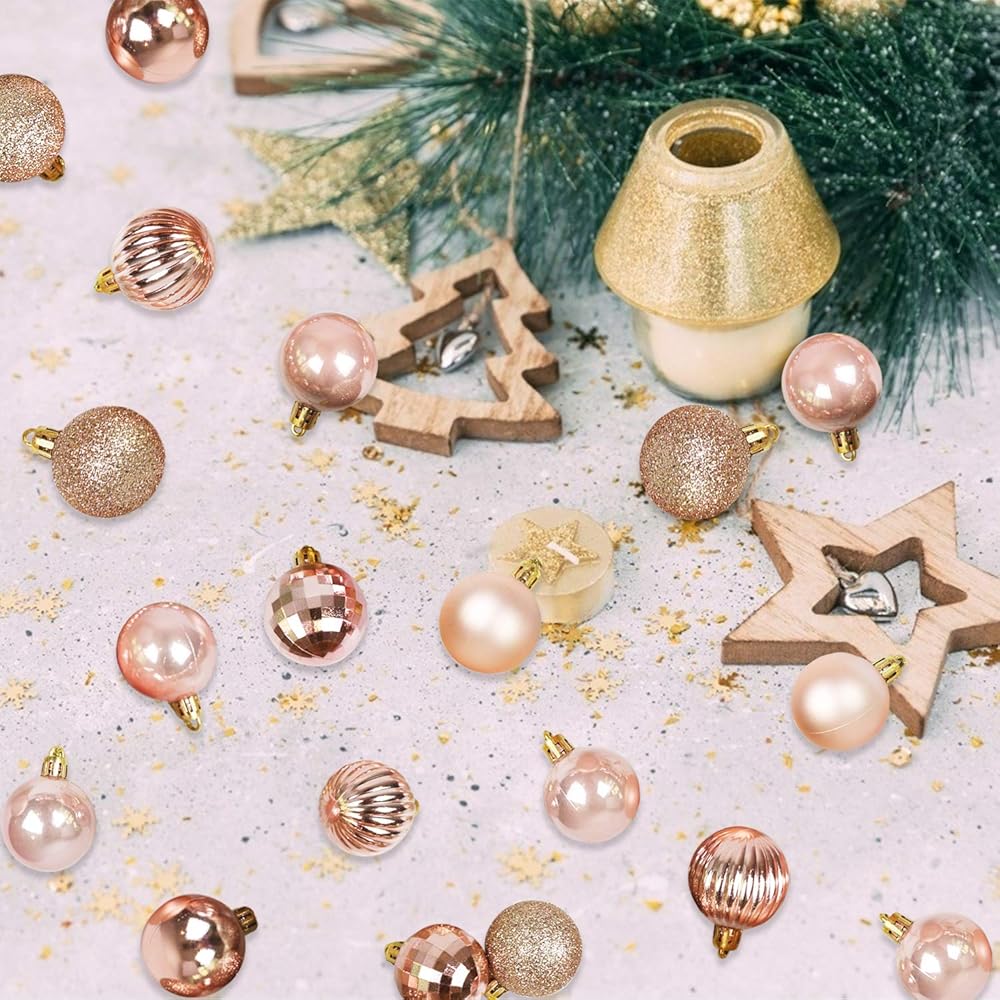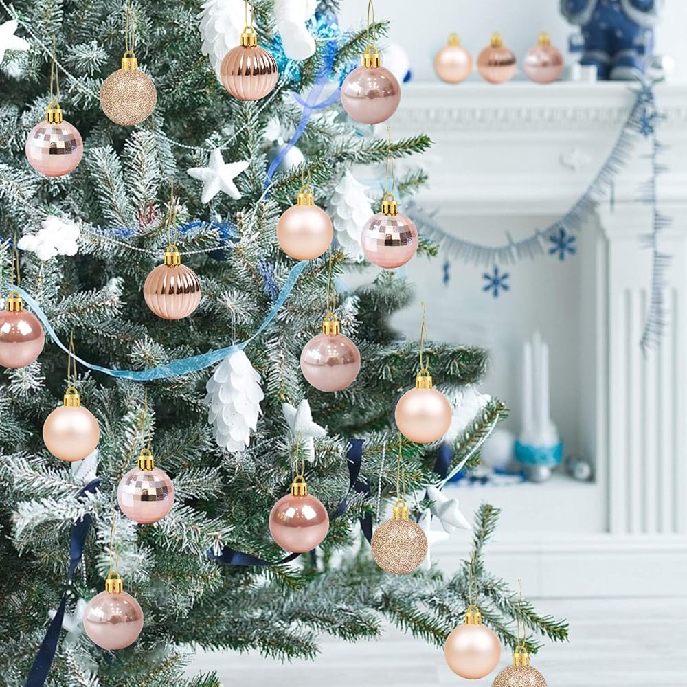 مجموعة زينة كرات عيد الميلاد الوفيرة - مجموعة زينة كرات عيد الميلاد الوفيرة تأتي مع 36 قطعة من كرات الذهب الوردي في 6 أنماط بما في ذلك (6 أسطح لامعة، 6 أسطح غير لامعة، 6 أسطح لامعة، 6 أسطح لامعة، 6 أسطح لامعة، 6 أسطح عاكسة هندسية ) وهي بالتأكيد الإضافات المثالية لديكورات حفلات عيد الميلاد أو ديكورات المنزل.