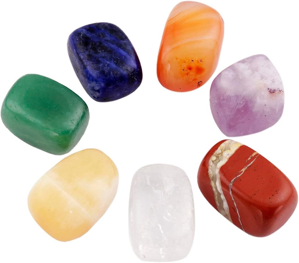 7 كريستالات شاكرا تتوافق مع كل شاكرا لديك. مجموعة موازنة الشاكرا السبعة هي: شقرا الجذر - اليشب الأحمر، شاكرا العجز - العقيق، شاكرا الضفيرة الشمسية - اليشم الأصفر، تشاركا القلب - أفينتورين الأخضر، شاكرا الحلق - سوداليت، العين الثالثة ( الحاجب) شقرا - الجمشت، شاكرا التاج - الكريستال الصخري.