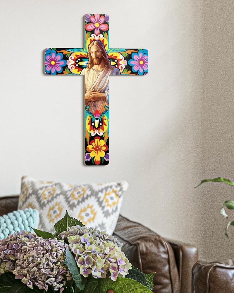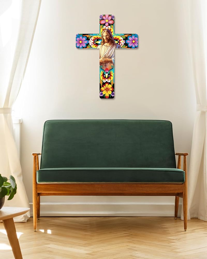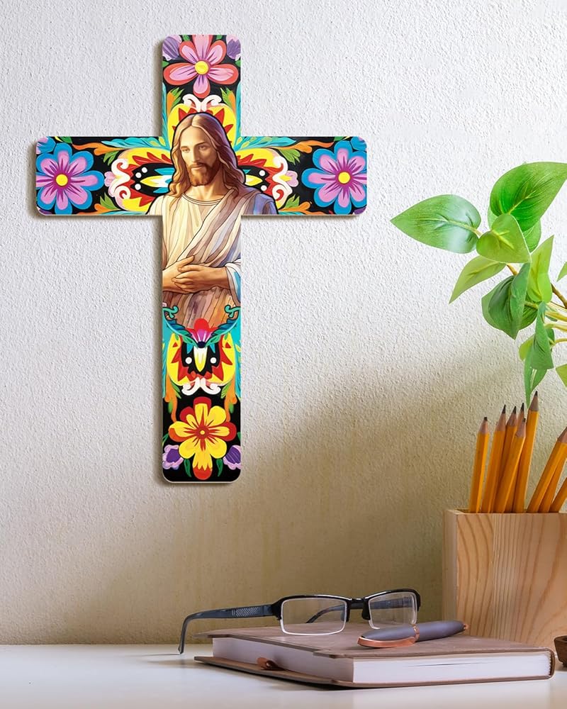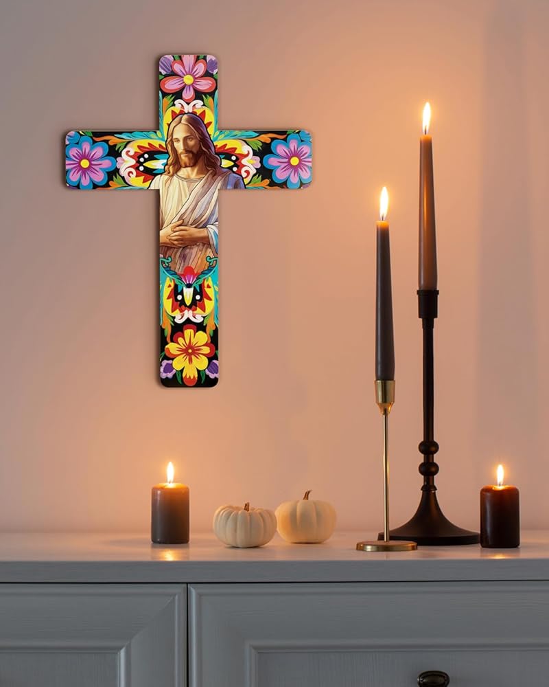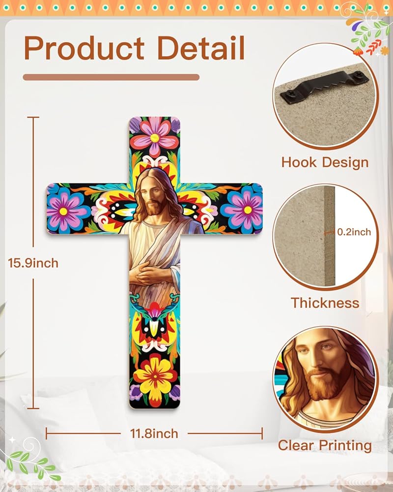 【مليئة بالسحر المكسيكي】صليب الحائط المزخرف المعلق مصنوع من مواد عالية الجودة، ومتينة، والألوان والأنماط ليس من السهل أن تبهت. أضف جوًا أكثر كثافة إلى حفلتك وديكور منزلك.