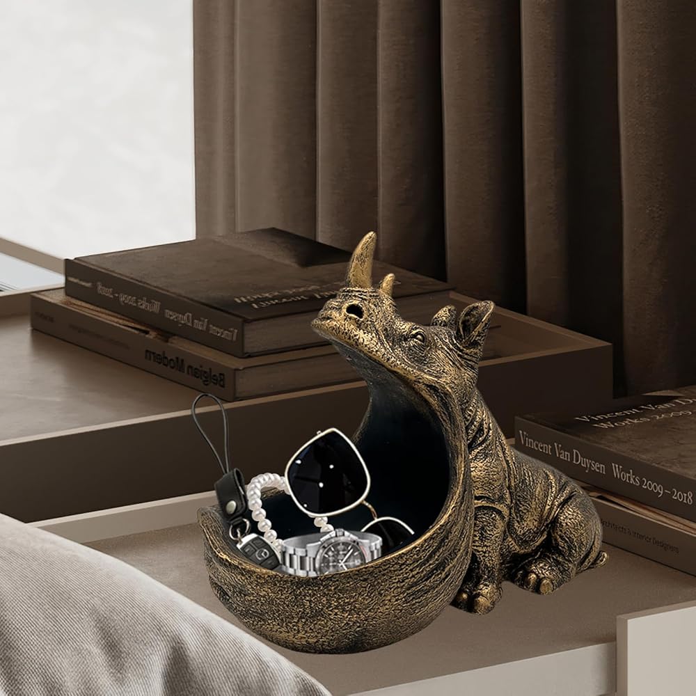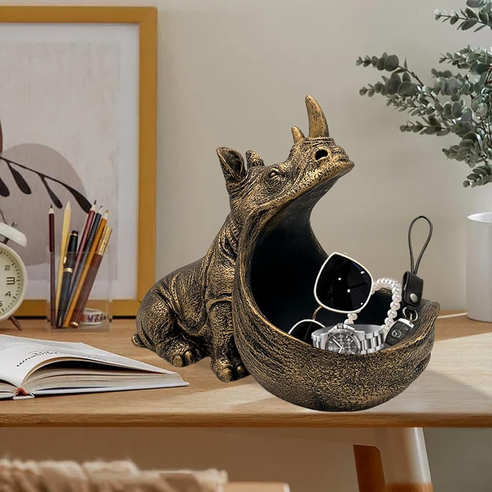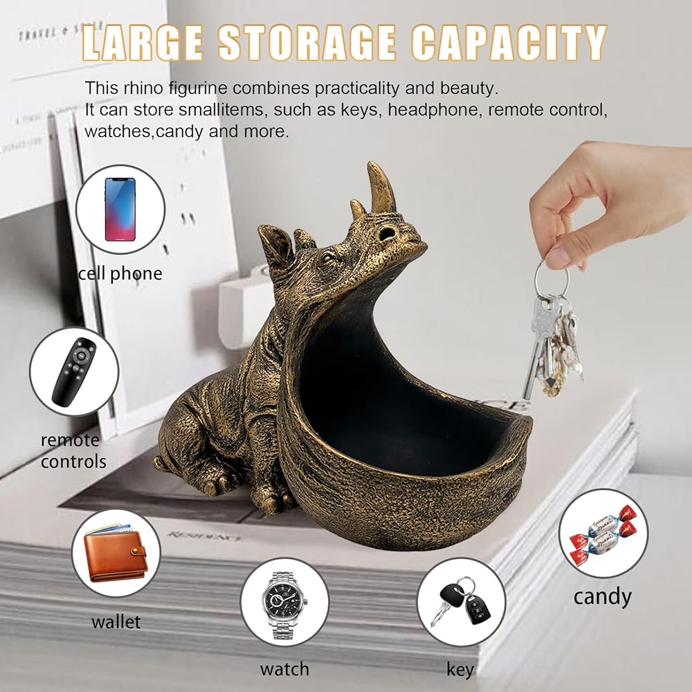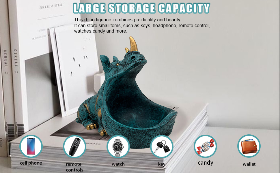• 【سعة كبيرة】يحتوي وحيد القرن على مساحة داخلية واسعة، مما يسمح لك بتخزين أغراضك الصغيرة مثل: مجموعة متنوعة من المفاتيح والساعات وأجهزة التحكم عن بعد وأحمر الشفاه والتذاكر واللوازم المكتبية. إنه منحوتة مضحكة وحامل مفاتيح.