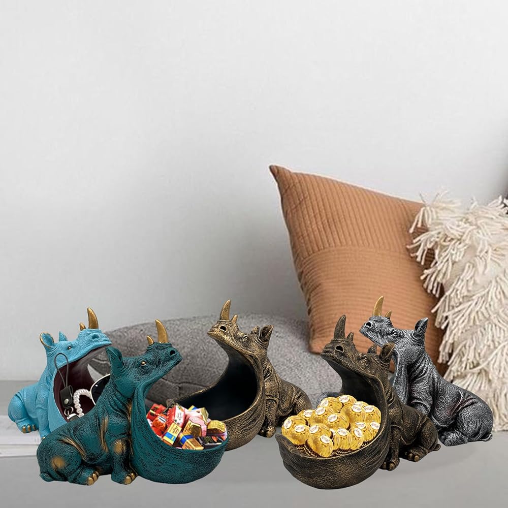 • 【حجم مثالي】9.06 × 6.3 × 9.5 بوصة، يمكن استخدام وعاء الحلوى كصندوق مفاتيح تخزين في شرفة المكتب أو غرفة النوم أو طاولة المدخل. تمثال وحيد القرن هو ديكور فني ممتع للطاولة، زينة للغاية، ملفت للنظر جدًا!