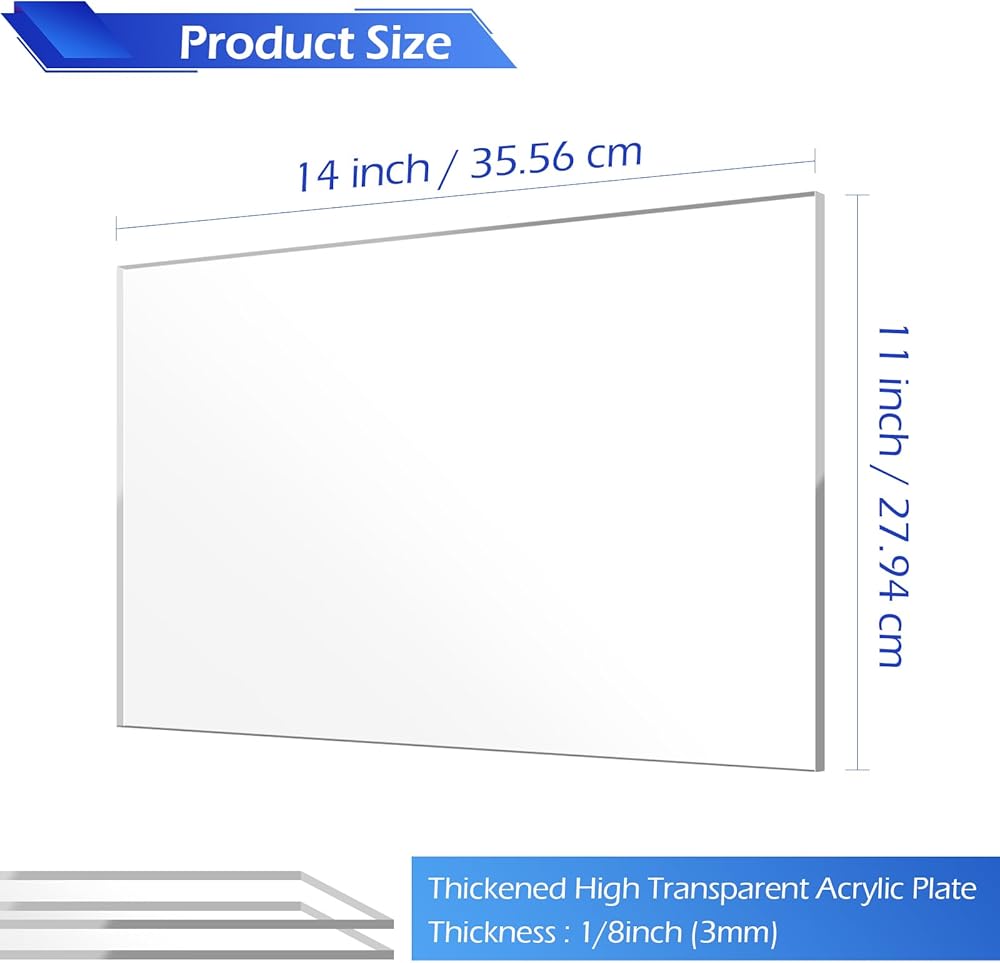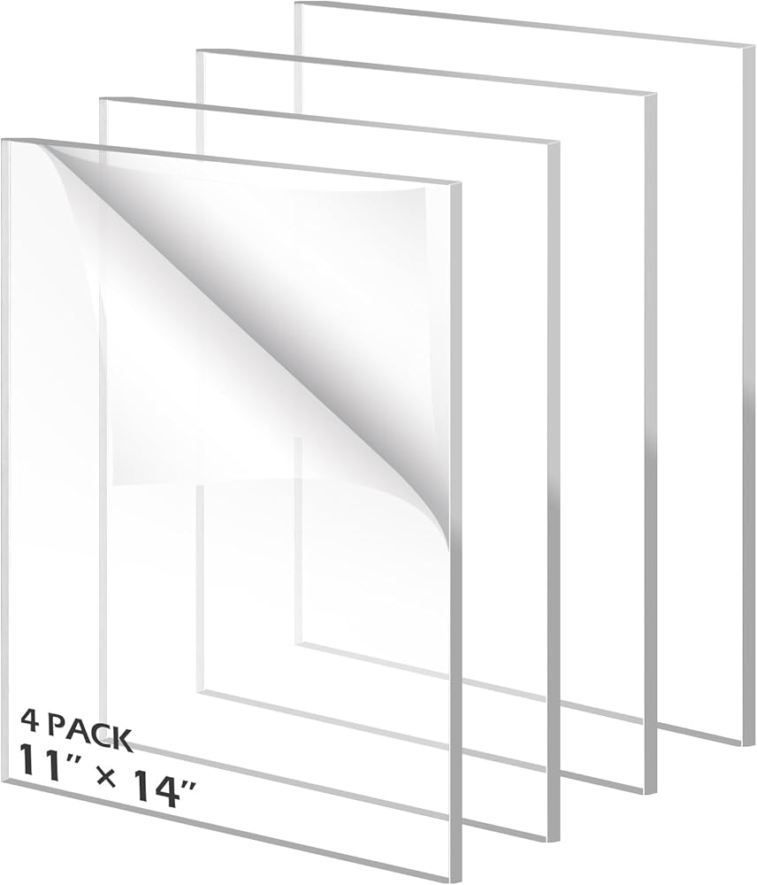 PACKAGE INCLUDES: 4 Pieces 11x14 inch clear acrylic sheets, smooth edges,1/8 inch (3mm) thick.