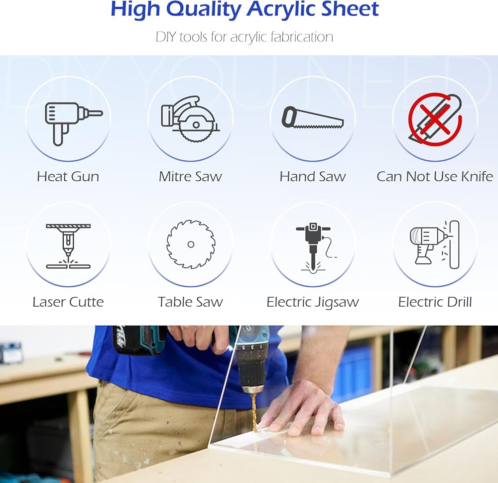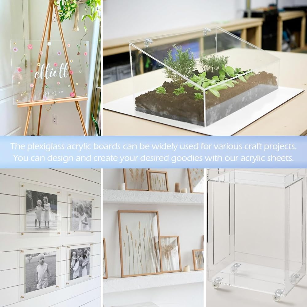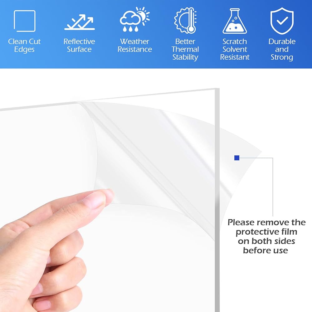 MULTIPURPOSE: The clear acrylic sheet is perfect for crafts, display or handmade gifts. Clear acrylic plastic sheet can be used for signage, display cases, props design, crafts and more!