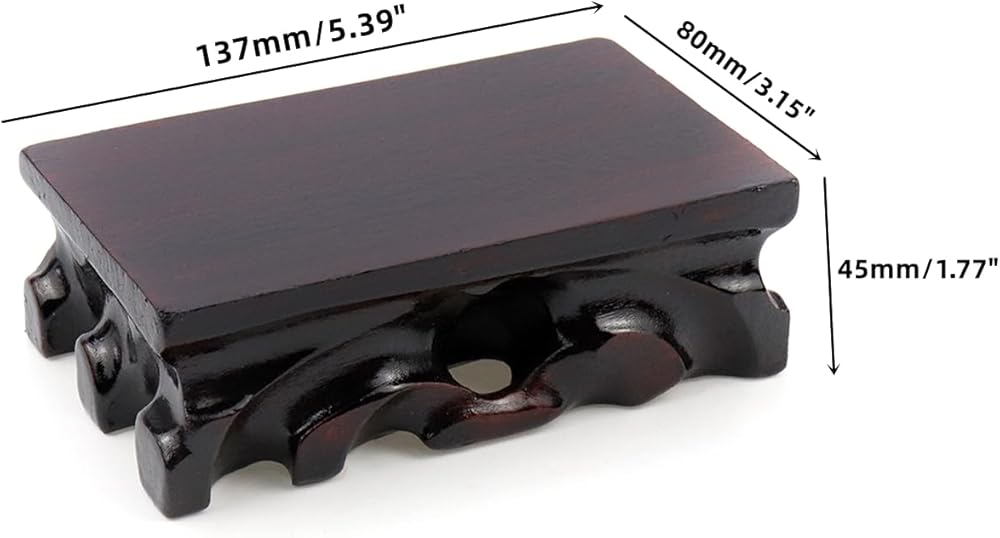 The wood display stand base size is 137×80×43mm/5.39"×3.15"×1.77" (L*W*H).