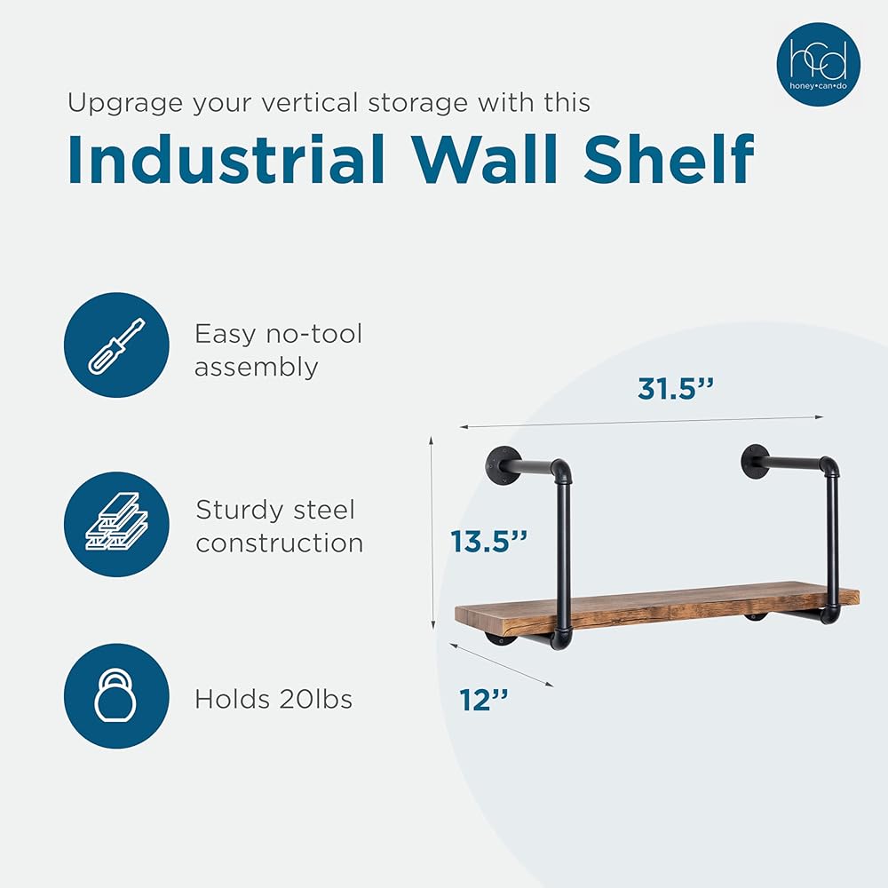 Vertical storage never looked so good. Display picture frames, books, plants, whatever your heart desires, and do so with style with this black industrial wall shelf that has a weight capacity up to 30-lbs. Easy assembly will have you up and running quickly, and the sleek black piping frame will add elegance with a touch of edgy to your space.