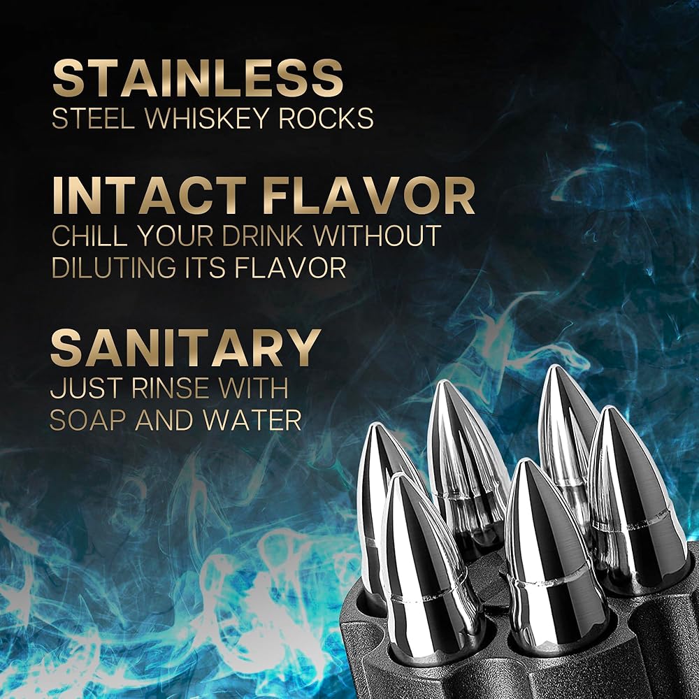 ملحقات الويسكي الأساسية: تتضمن مجموعة أحجار الويسكي TF TAKEFLIGHT 6 صخور تبريد من الفولاذ المقاوم للصدأ، مقدمة بأناقة في علبة فوهة صلبة مسطحة أنيقة. هذه المجموعة ليست مجرد إكسسوار عملي ولكنها أيضًا تعبير عن الأناقة والأناقة. إنها الإضافة المثالية لأي مجموعة لمحبي الويسكي.