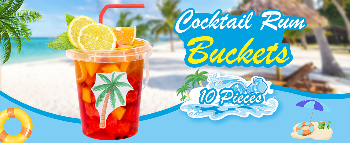 【مادة آمنة】: دلو بلاستيكي مصنوع من مادة البولي بروبيلين المتينة والآمنة ويتميز بملصقات الفينيل المقاومة للماء، دلاء روم الكوكتيل الشفافة الخاصة بنا عديمة الرائحة ومقاومة للاهتراء وتوفر دعمًا قويًا للالتصاق.