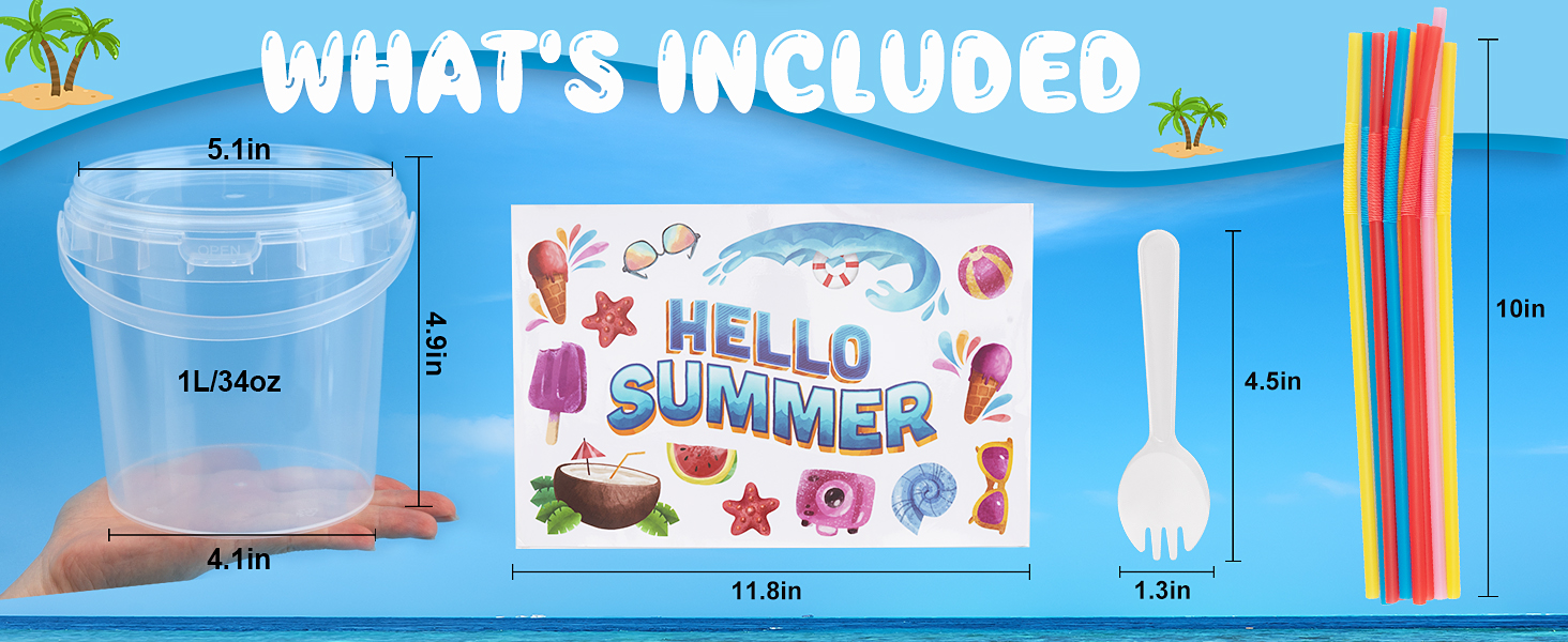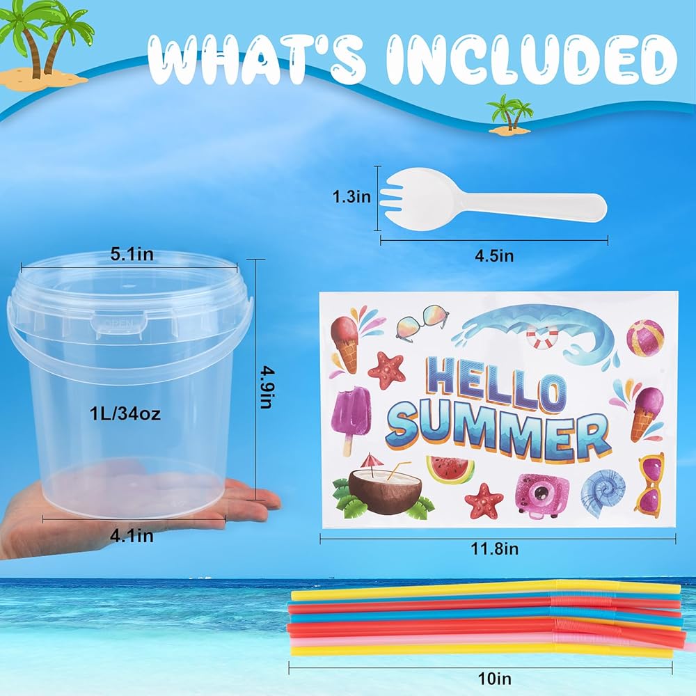 【مجموعة كاملة】: تتضمن عبوتنا 10 دلاء روم للمشروبات، و147 ملصقًا صيفيًا، و10 سبورك و20 شفاطة ملونة، مما يوفر حلاً كاملاً يمكنك صنعه بنفسك لاحتياجاتك اليومية أو استضافة الأحداث.