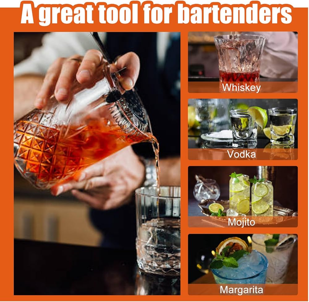 استخدامات متعددة: سواء كنت تمزج الويسكي أو الفودكا أو غيرها من المشروبات الروحية، فإن مجموعة النادل الخاصة بنا مناسبة لمختلف الكوكتيلات. مع مكعبات الثلج المصنوعة من الفولاذ المقاوم للصدأ وملقط الثلج، يمكنك تبريد مشروباتك بسهولة دون تخفيفها، مما يجعلها مثالية للحانات المنزلية والحفلات والاستخدام الاحترافي.