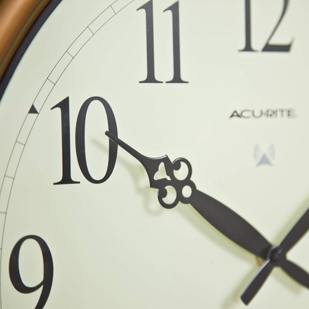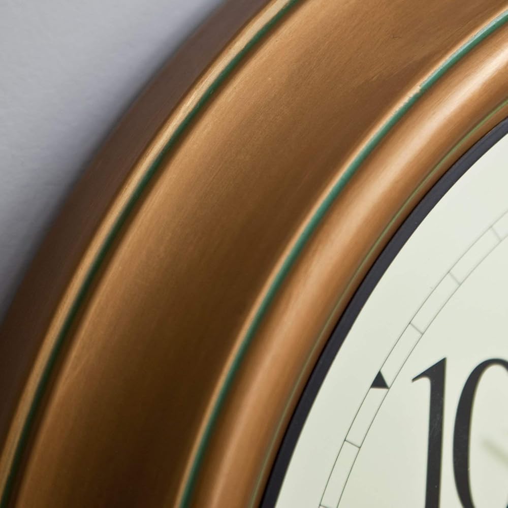 Copper-finish indoor/outdoor atomic wall clock with thermometer