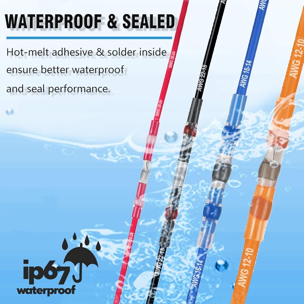 ▶Waterproof Seal - Dual-Walled tubing ensures waterproof seal and prevents wire corrosion. Hot melt adhesive & solder inside, sealed with advanced waterproof function