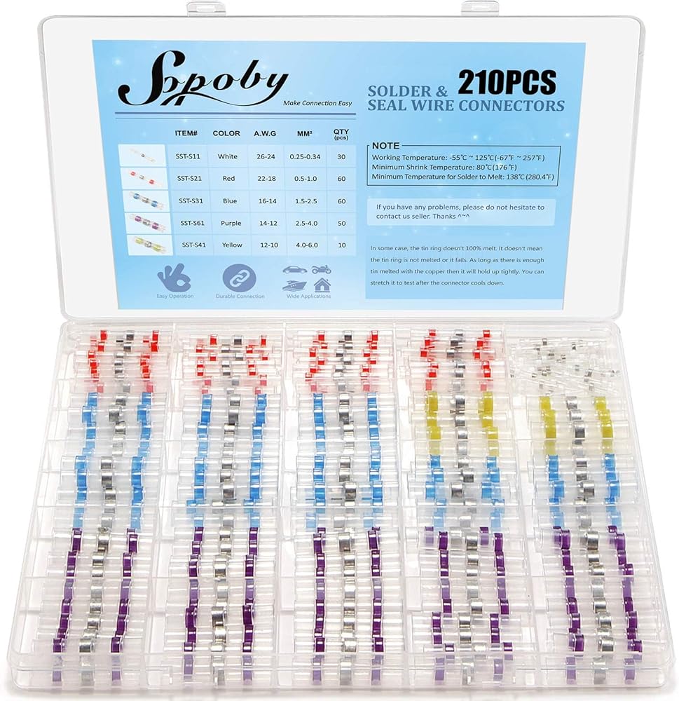 Sopoby 330PCS Solder Seal Heat Shrink Butt Wire Connectors