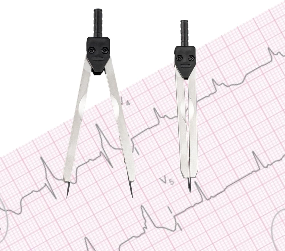 EKG Calipers, ECG Caliper Measuring Tool with Ruler, Stainless Steel Electrocardiogram Drafting Divider for Measuring Electrocardiographs