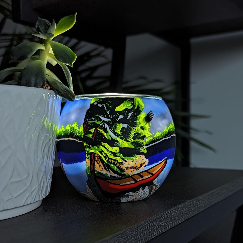 Mesmerizing Design: This glass candle holder features a captivating Northern Lights motif, bringing the beauty of the aurora borealis into your home.