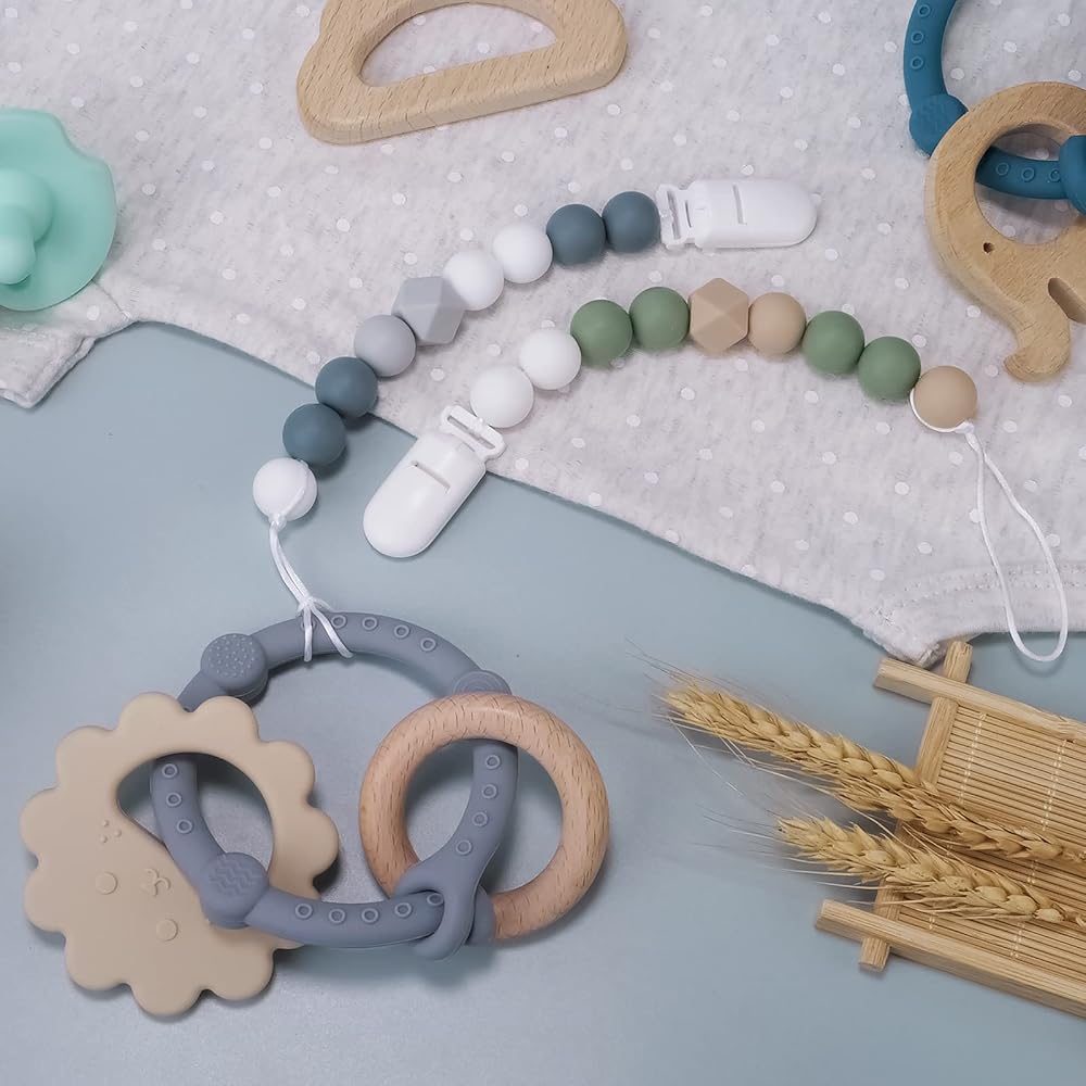 【جودة السلامة】سلسلة مصاصة الطفل مصنوعة من مادة ناعمة ومتينة ولا داعي للقلق بشأن تهيج جلد طفلك. خالية من البيسفينول A، ولا تحتوي على PVC أو الكادميوم أو الرصاص أو الفثالات أو المعادن. لا رائحة خاصة.