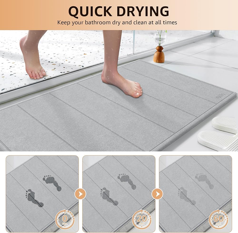 • امتصاص فائق وسريع الجفاف: الهيكل المسامي الطبيعي للأرض الدياتومي يمنحها خصائص فائقة لامتصاص الماء. تمتص سجادة الحمام الأرضية الدياتومية الماء بسرعة وتجف في غضون دقائق، مما يمنع تراكم الماء ويحافظ على قدميك جافة ونظيفة. تحافظ سجادة الحمام الحجرية سريعة الجفاف على الأرضية الجافة والنظيفة بشكل فعال، مما يخلق بيئة معيشة مريحة