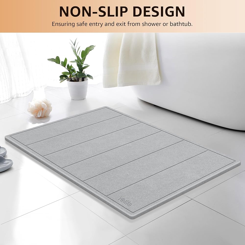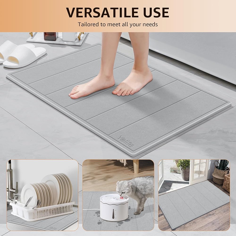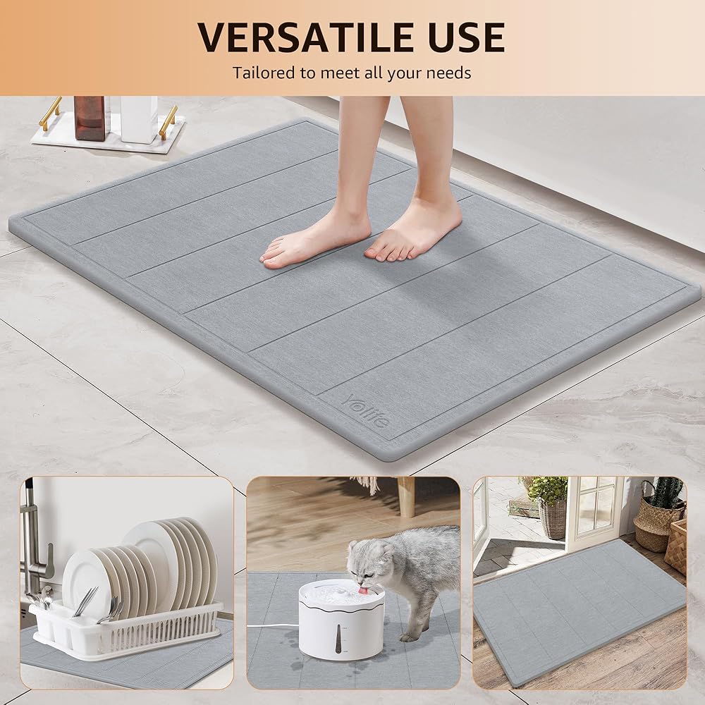 • حجم كبير واستخدام متعدد الاستخدامات: توفر سجادة الحمام الحجرية الكبيرة مقاس 81.28 سم × 50.8 سم مساحة تغطية أكبر، مما يضمن أن لديك مساحة كافية لوضع قدميك بعد الاستحمام، وتجنب رذاذ الماء وجعل حمامك نظيفًا ومرتبًا. يمكن أيضًا استخدام هذه السجادة الحجرية متعددة الاستخدامات في سجادات تجفيف المطبخ وسجادات المدخل وسجادات أوعية الحيوانات الأليفة، مما يلبي احتياجاتك في العديد من السيناريوهات.