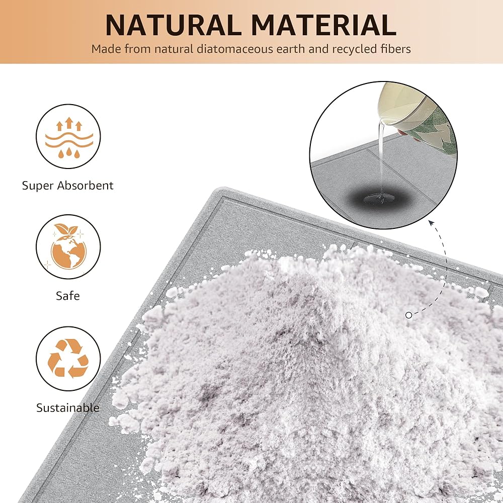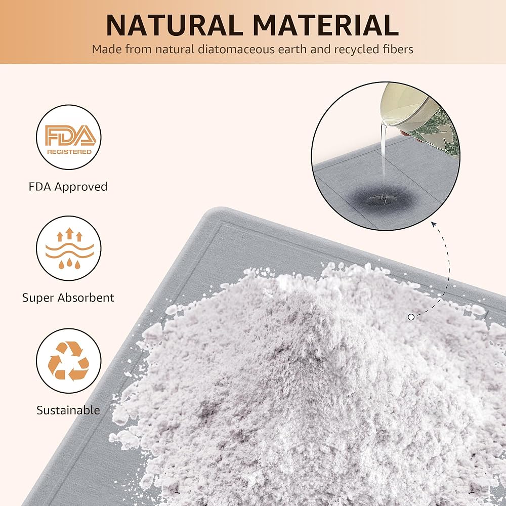 • مواد طبيعية ومستدامة: سجادة حجر الحمام الخاصة بنا مصنوعة من الأرض الدياتومية والألياف الورقية المعاد تدويرها. إنه مدعوم بشهادة إدارة الغذاء والدواء الأمريكية (FDA)، مما يضمن سلامته وطبيعته غير الضارة، ويحمي صحة عائلتك. على عكس سجادات الحمام القماشية التقليدية، فإن سجادة الدياتوميت هذه تقاوم بشكل طبيعي تراكم الروائح الكريهة وتقلل من الحاجة إلى التنظيف والاستبدال المتكرر.
