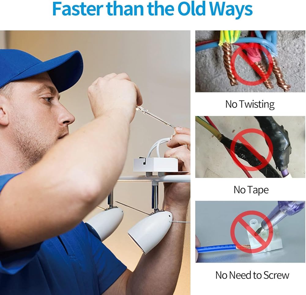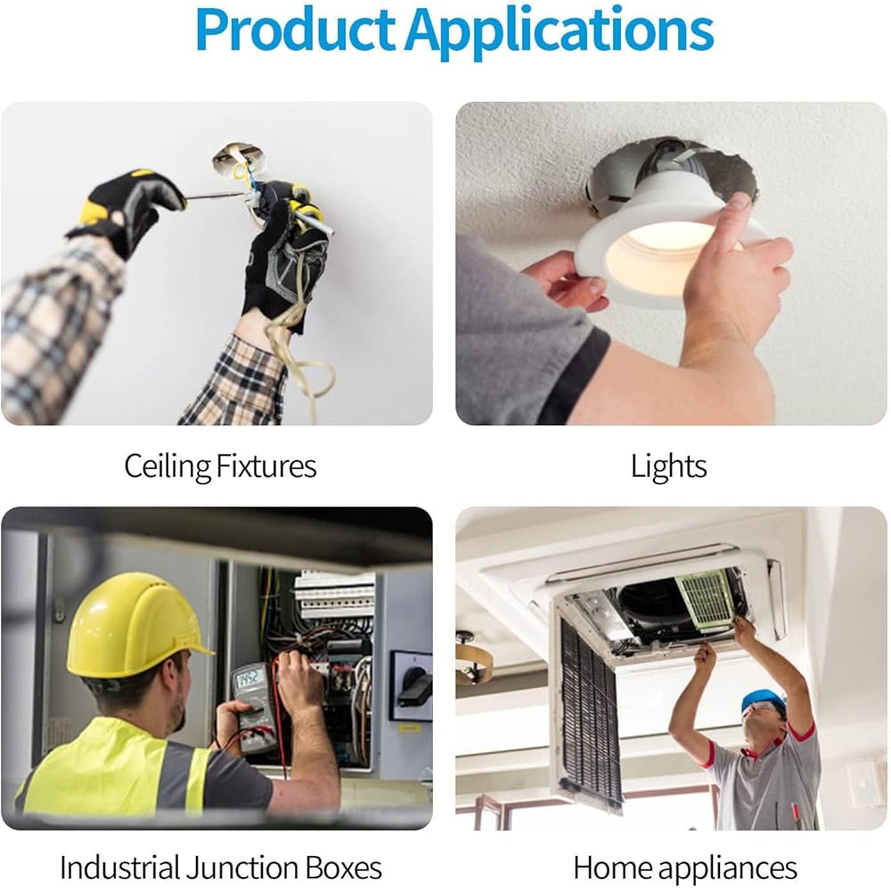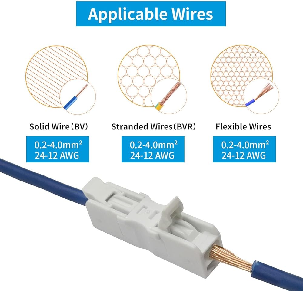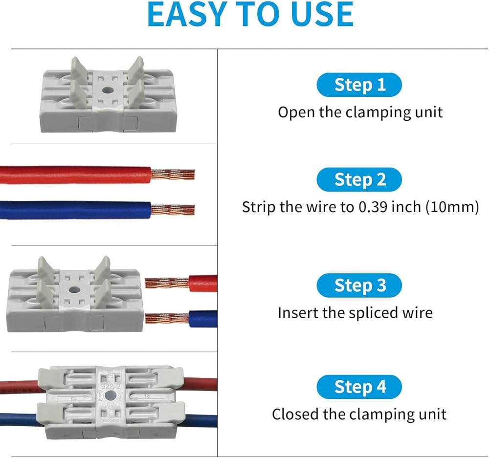 صواميل موصلات الرافعة المضمنة سهلة الاستخدام: لا تتطلب الموصلات الكهربائية للأسلاك أي أدوات لتوصيل الأسلاك، فقط استخدم يديك. ارفع القضيب إلى 90 درجة، وأدخل السلك المقسم وأغلق القضيب لإكمال الأسلاك (يرجى فصل السلك إلى 0.39 بوصة والتأكد من إدخال السلك في النهاية)