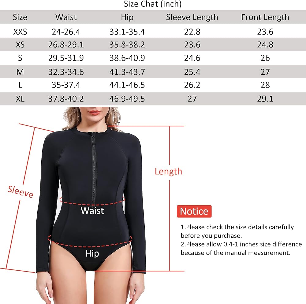 بدلة سباحة بأكمام طويلة: تصميم أنيق من قطعة واحدة باللون الأسود، يجعلك أنيقًا وساحرًا أثناء السباحة وركوب الأمواج والغوص والتزلج على الماء والتجديف واليوجا المائية.