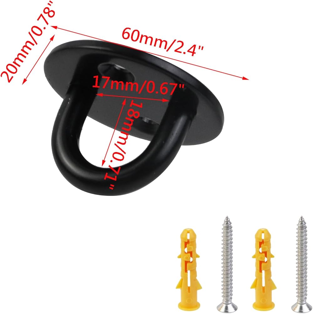 The package contained: 4 pieces of black stainless steel pad eye plates with enclosed hook and 8 pieces of mounting screws and plastic anchors.