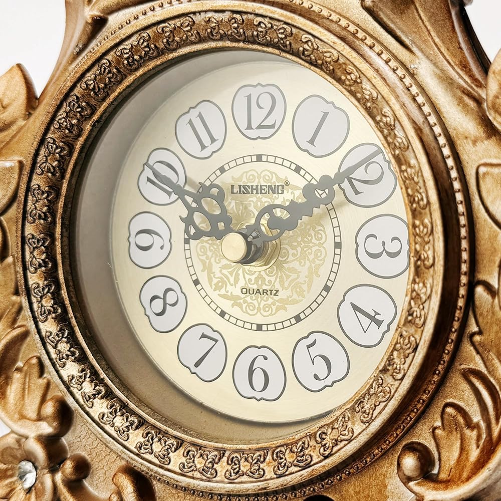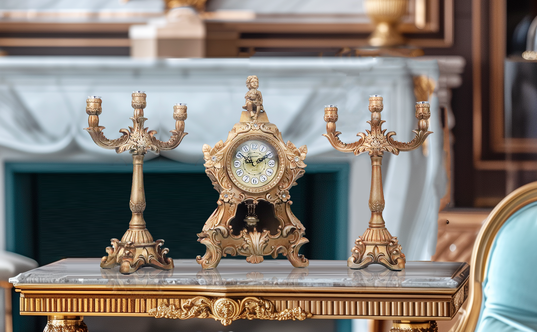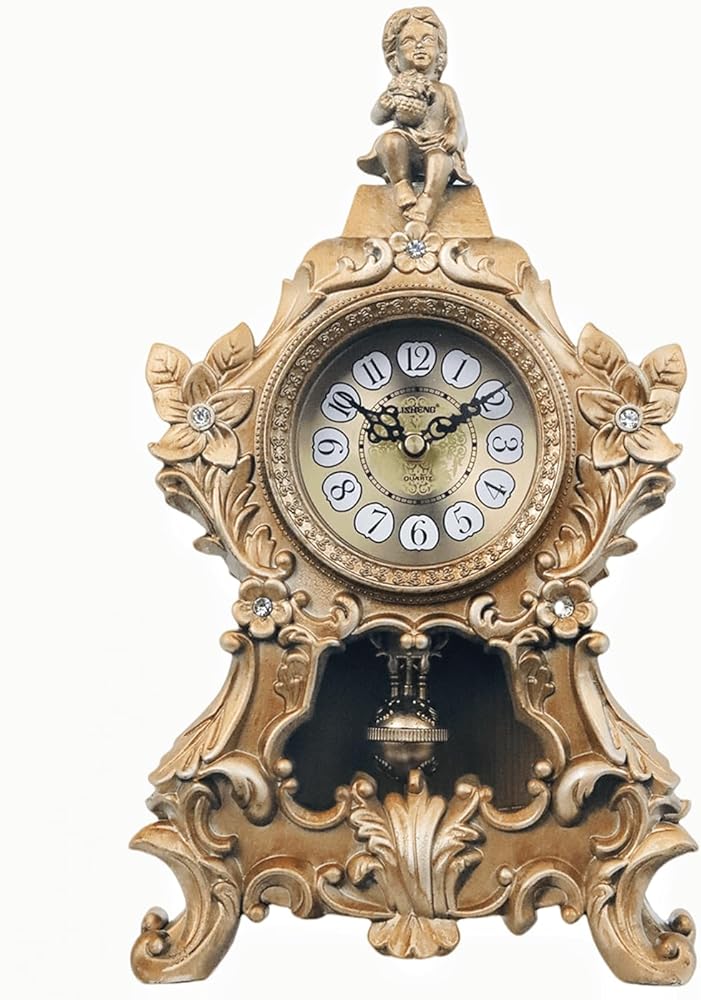 • ساعة الراتنج الباروكية: ساعة رف الباروك هذه مصنوعة من الراتنج القوي، وتتميز بنقوش زهرية مفصلة وتمثال ملائكي، يحاكي النحاس العتيق للحصول على مظهر خالد. المقاس: 8*2.5*15 بوصة، حامل الشمعة: 8*4*13 بوصة، 5.3 رطل.