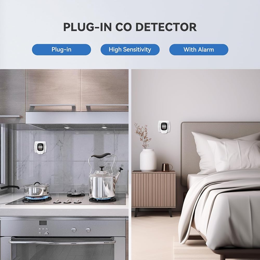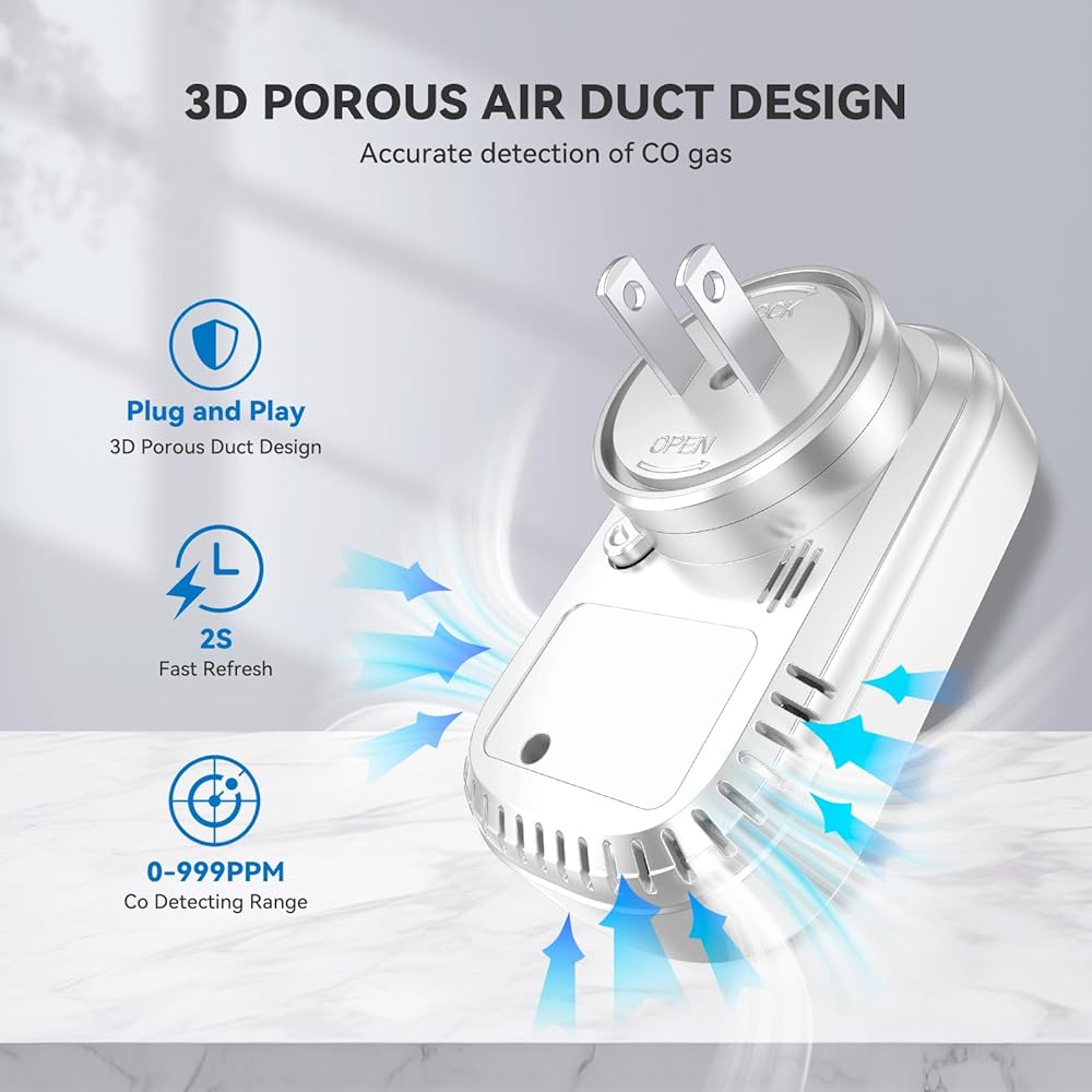 تصميم 3 في 1 يجمع كاشف أول أكسيد الكربون ويراقب ثاني أكسيد الكربون ودرجة الحرارة والرطوبة في الوقت الفعلي. هذا متاح أيضًا لـ 110-220 فولت. إنه مثالي للداخل، والمنزل، وغرفة المعيشة مع موقد، ومدفأة خشبية، والمطبخ، وغرفة النوم، والحمام، والقبو، والفندق، والجراج.