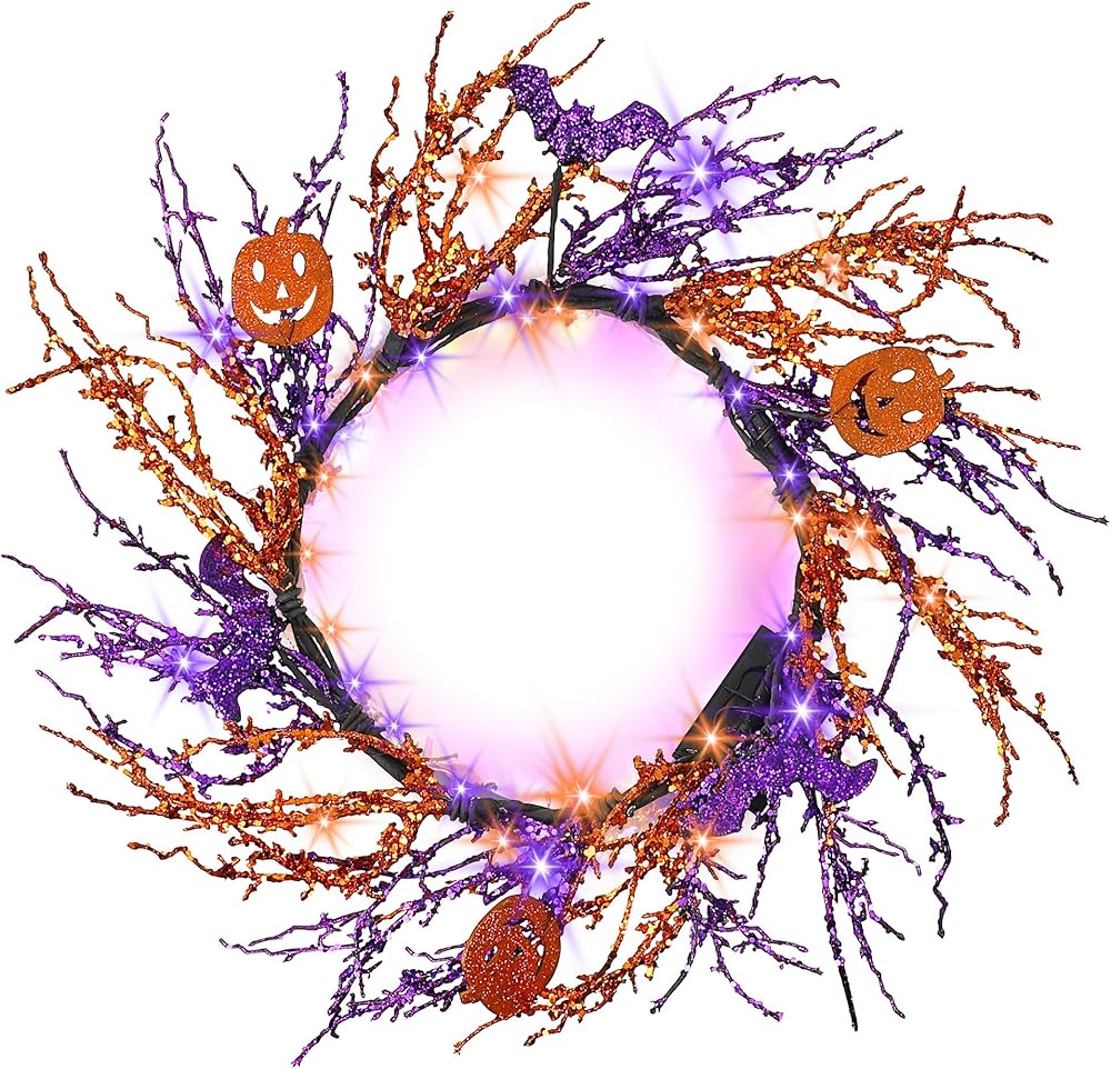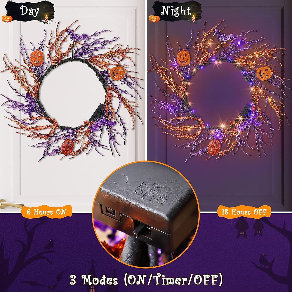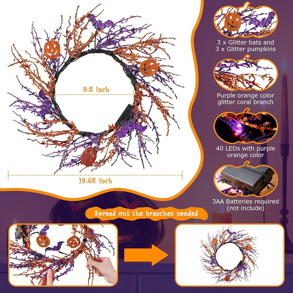 The handmade Halloween wreath is purple and orange, bat and pumpkin is also Halloween themes, therefore it looks very spooky and scary. It will be a good choice if you hang it on the window or wall.