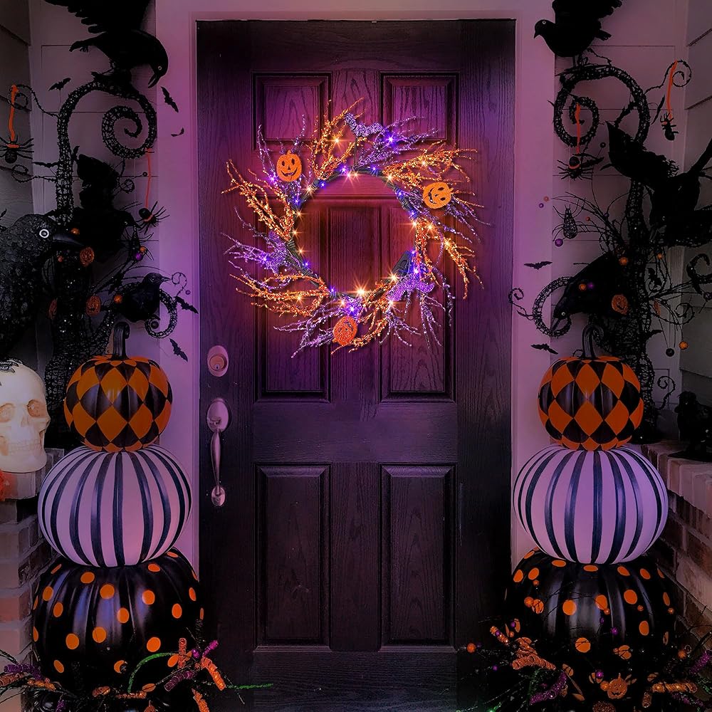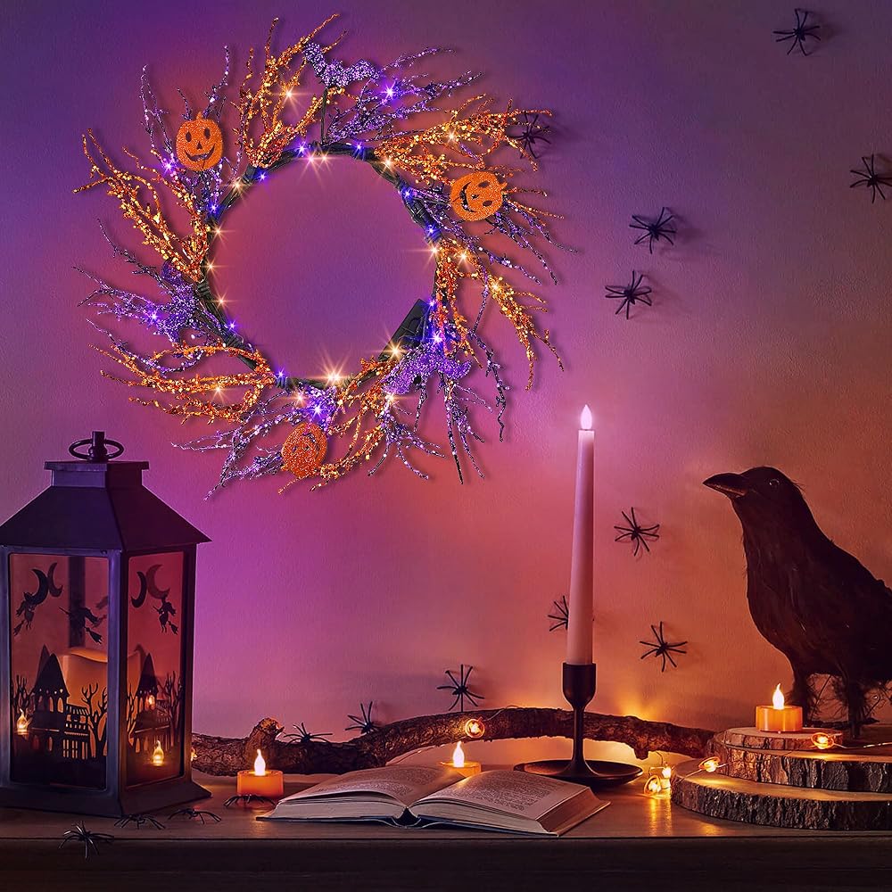This Halloween wreath is suitable for porch, hallway, attic, stairway and the corner. It can adds color and bring vivid looking to your space belong yourself. Just need to easily hanging it on the wall, your porch will totally different from previous time.