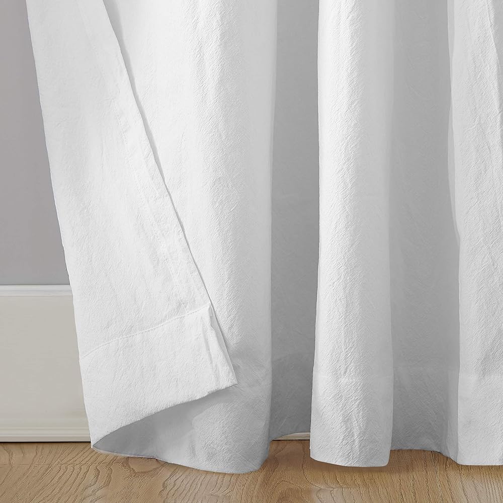 This handsome cotton curtain is classic good looks with a twist. Twist Tab Curtains from Archaeon add personality with a unique twist tab top design reminiscent of the classic bow tie. The washed texture semi-sheer 100% cotton fabric gently filters light while enhancing privacy. Tab top design allows for simple slide-through installation on curtain rods up to 1 ½" in diameter. Sold as individual panels measuring 52" width by 84" length in color white. Measure carefully before selecting your desired size and quantity. Rod not included. Machine wash cold on gentle cycle. Use non-chlorine bleach when needed. Tumble dry on low heat, using a cool iron as needed.