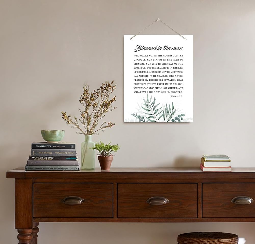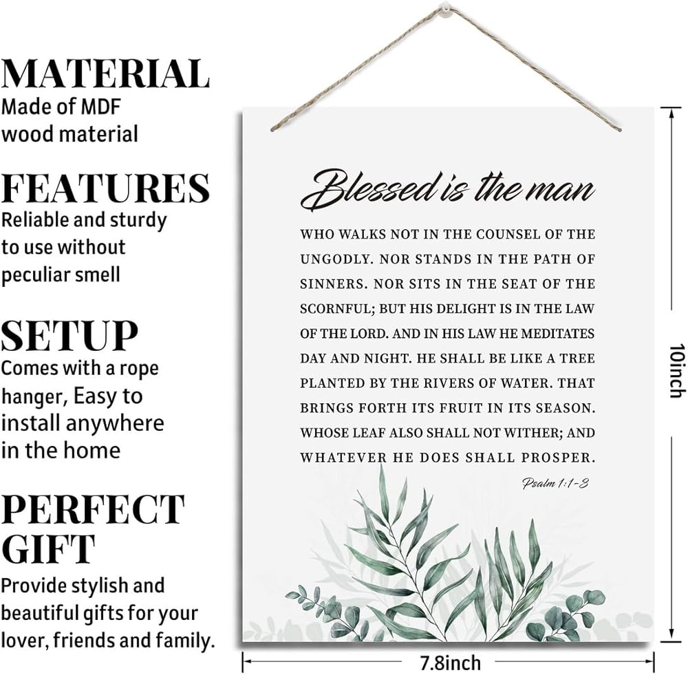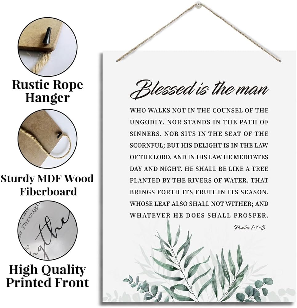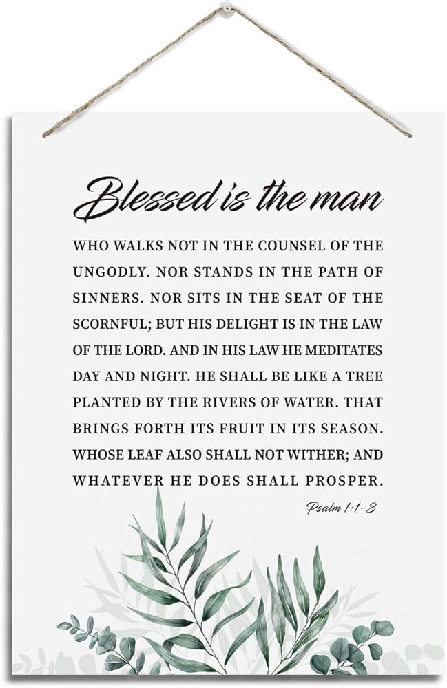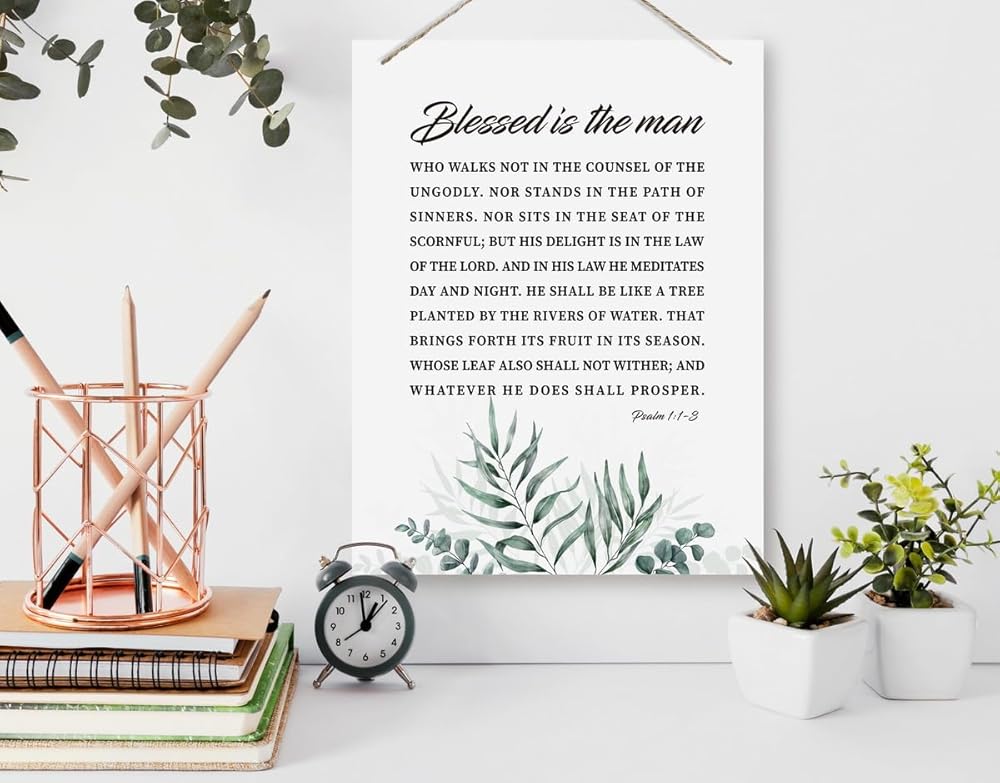 ديكور جدار ملهم، علامات خشبية معلقة زخرفية، فن ديكور الكتاب المقدس، علامة آية الكتاب المقدس، هدية مسيحية للأب الرجل، ديكور مكتب المنزل، مزمور 1: 1-3 علامة فنية جدارية - طوبى للرجل