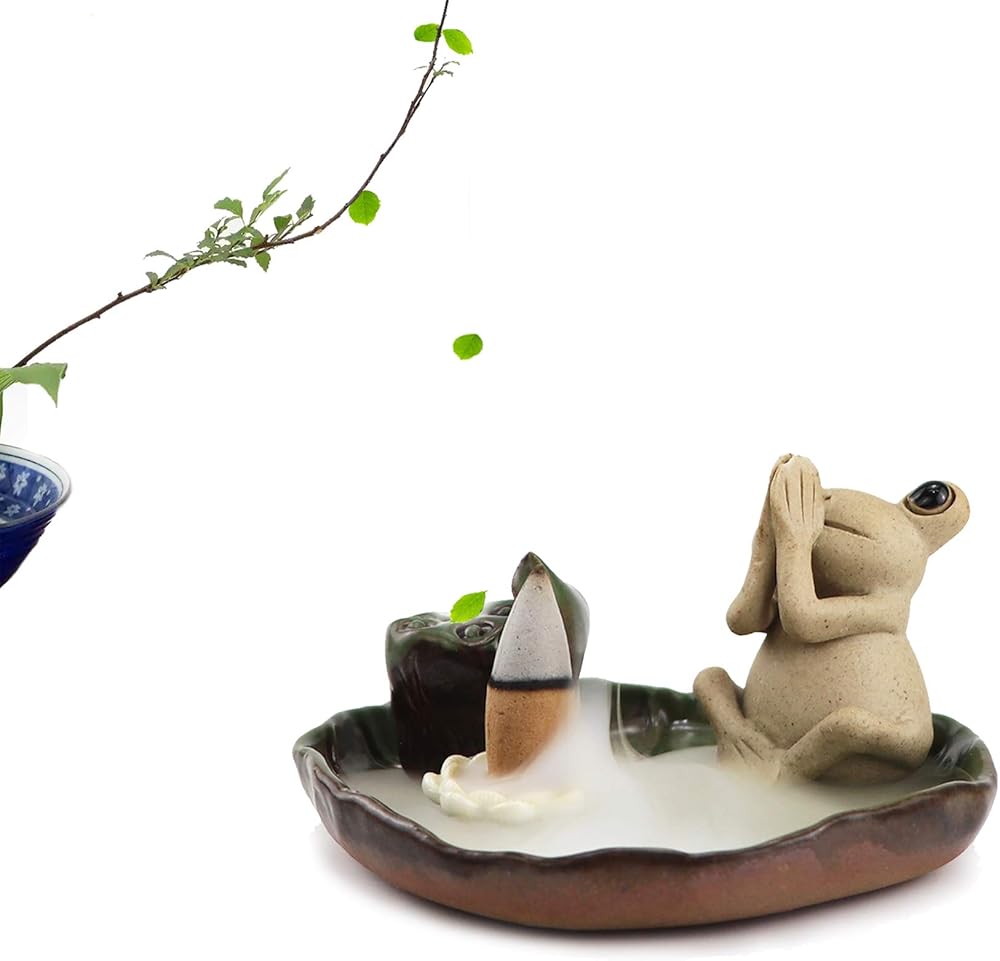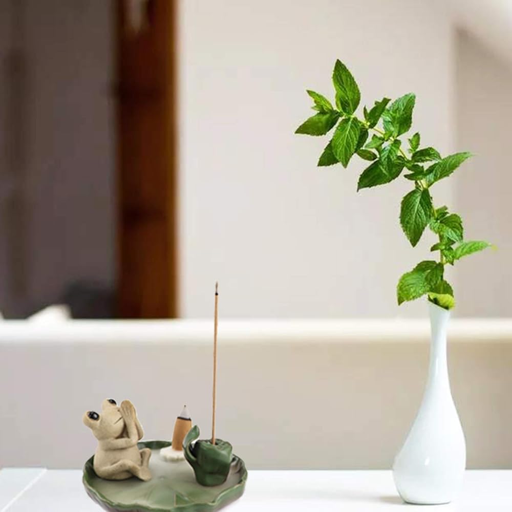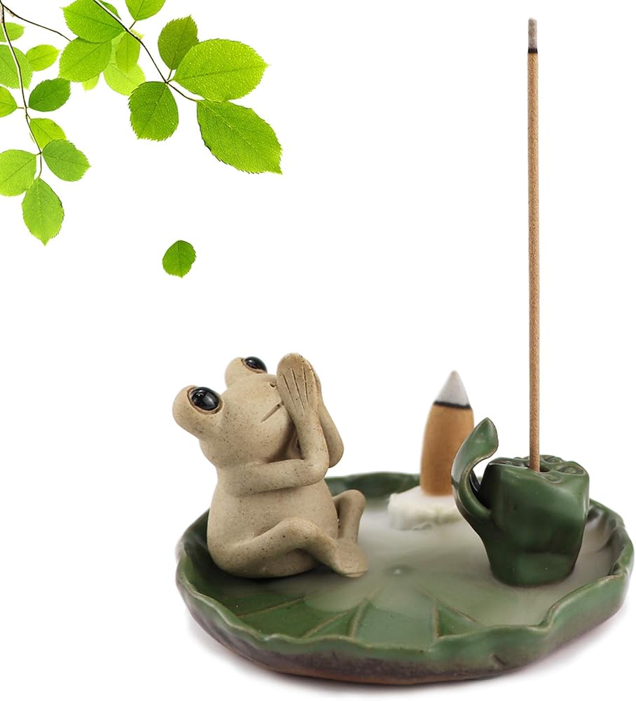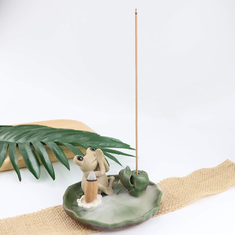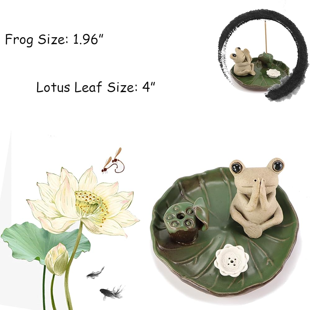 حامل عصا البخور اللطيف: مبخرة أوراق اللوتس مع تمثال ضفدع صغير وحامل بخور اللوتس الصغير