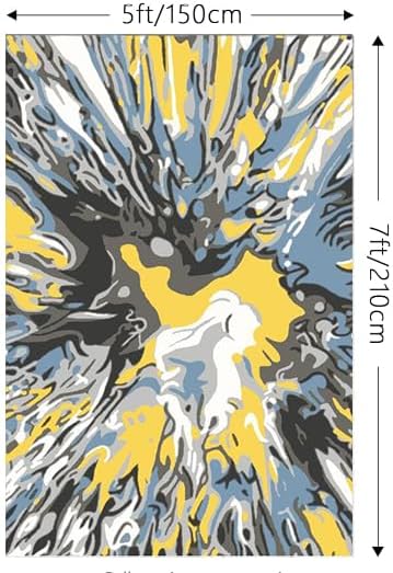 سجادة FINOREN ناعمة ومقاومة للبقع، سجادة منطقة منخفضة الزغب مقاس 5 × 7 أقدام لغرفة النوم، وغرفة المعيشة، والشقة. ظهر غير قابل للانزلاق قابل للغسل. أصفر-أبيض.