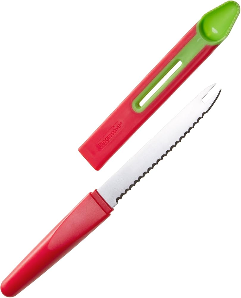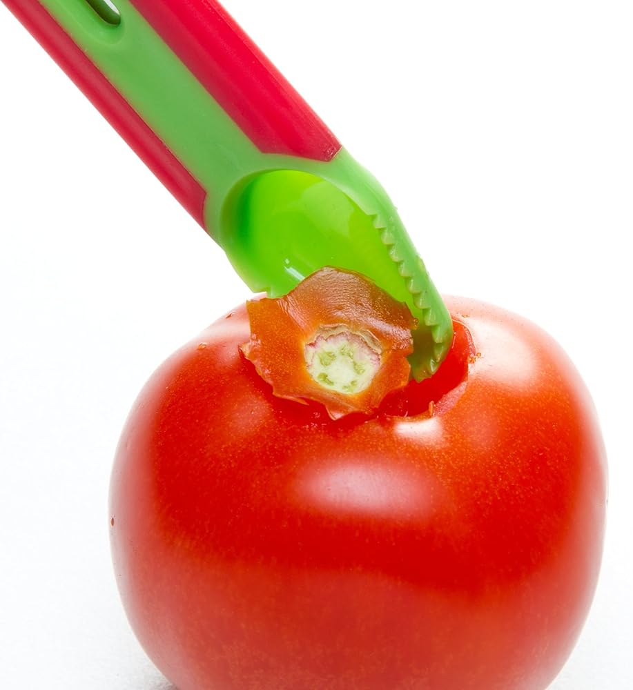 Prepworks by Progressive 3-in-1 Tomato Tool cores, slices, deseeds and serves tomatoes, making it the go-to tomato tool. The serrated blade is perfectly designed for slicing tomatoes and the blade cover makes it ideal for packing in a picnic basket.