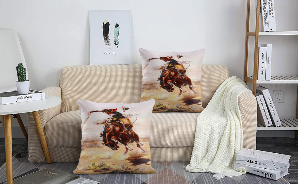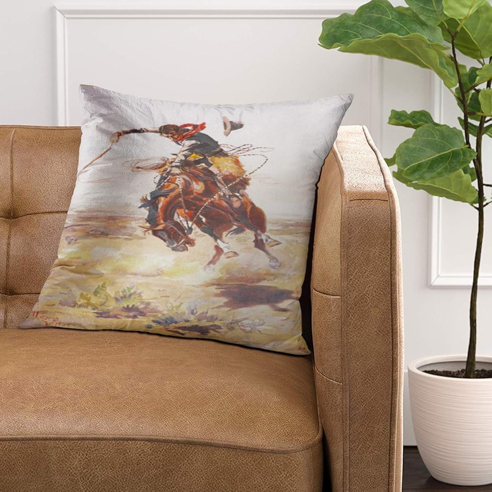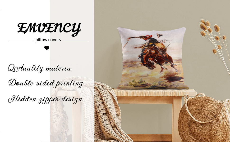 Emvency رمي غطاء وسادة قديم خمر الغرب المتوحش كاوبوي خالف الحصان كسوة وسائد للزينة ديكور المنزل مربع 20x20 بوصة المخدة