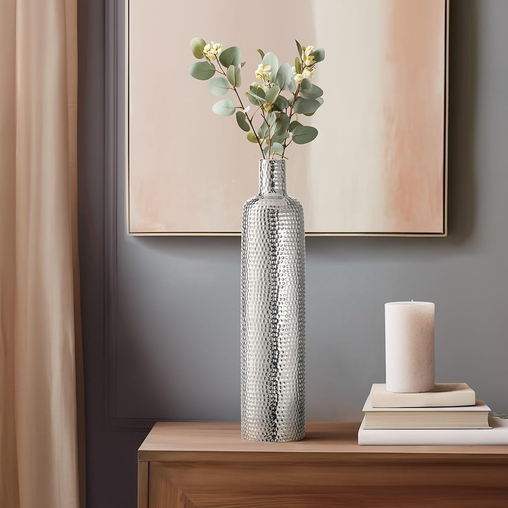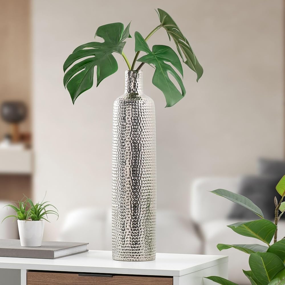 ضعها على رف غرفة المعيشة الخاصة بك - مثالية في أي مساحة داخلية بالمنزل، يمكن وضع مزهرية الزهور الفضية هذه في وحدة التحكم في غرفة المعيشة الخاصة بك، أو طاولة المدخل، أو رف غرفة المعيشة أو رف الموقد، أو سطح المطبخ، أو غرفة المسحوق والحمام.