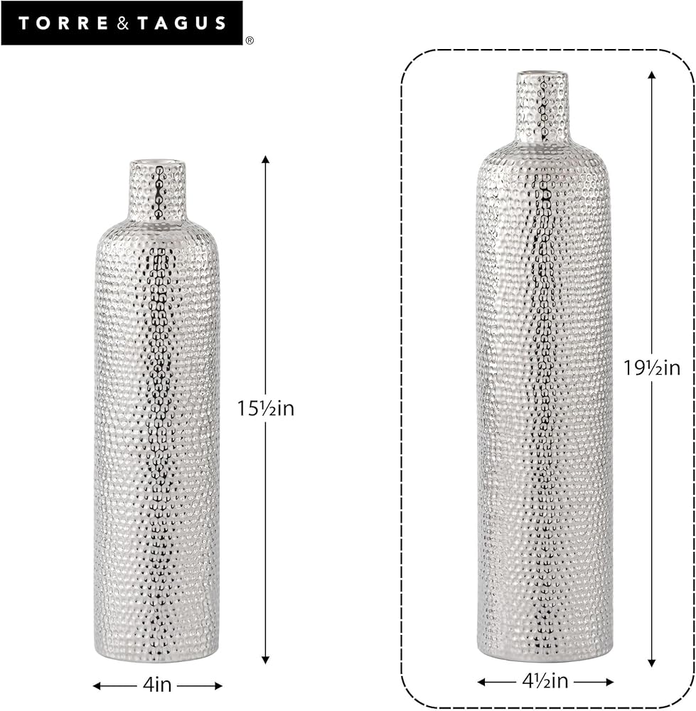 مزهرية زهور سيراميكية مذهلة - تتميز مزهرية الزهور المدملة المصنوعة يدويًا من Torre & Tagus بلمسة نهائية فضية ناعمة مع تصميم عنق الزجاجة الذي يوفر جمالية فريدة لأي غرفة معيشة أو مطبخ.