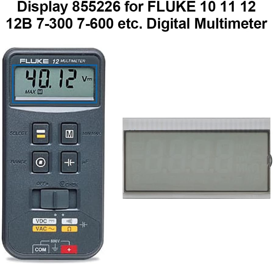 Product: Display Replacement for FLUKE 10 11 12 12B 7-300 7-600 etc. Digital Multimeter Screen Reference OEM Number: 855226, SLF7723G For Repair Digital Display Segment Fading Missing or Sometimes Referred to as "Ghosting" Condition and Screen Cracked or has Black Blotches. You only do some easy disassemble, no any soldering involved. Display segment fading missing or "ghosting" condition is a common problem for digital multimeter models 10 11 12 12B 7-300 7-600 etc. The replace procedure of display are usually have on Youtube. Dimension: 55.5*30mm Package Included: 1PCS LCD Display. We selling LCD display only, the digital multimeter in picture as an application scenario instruction, not included for sale.