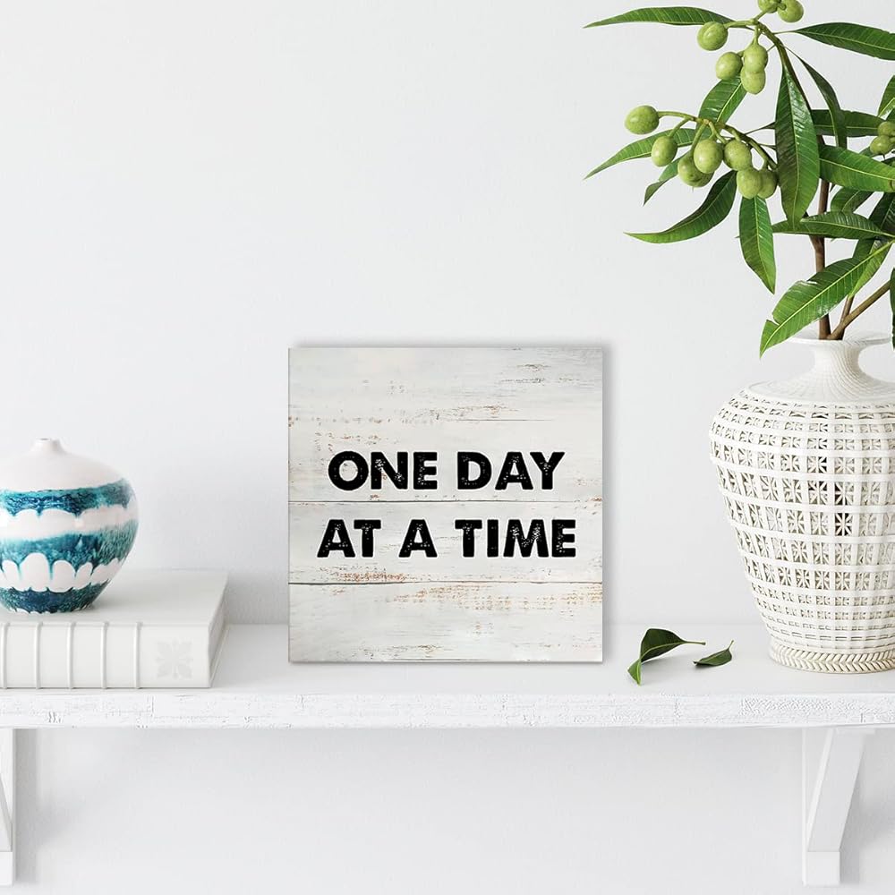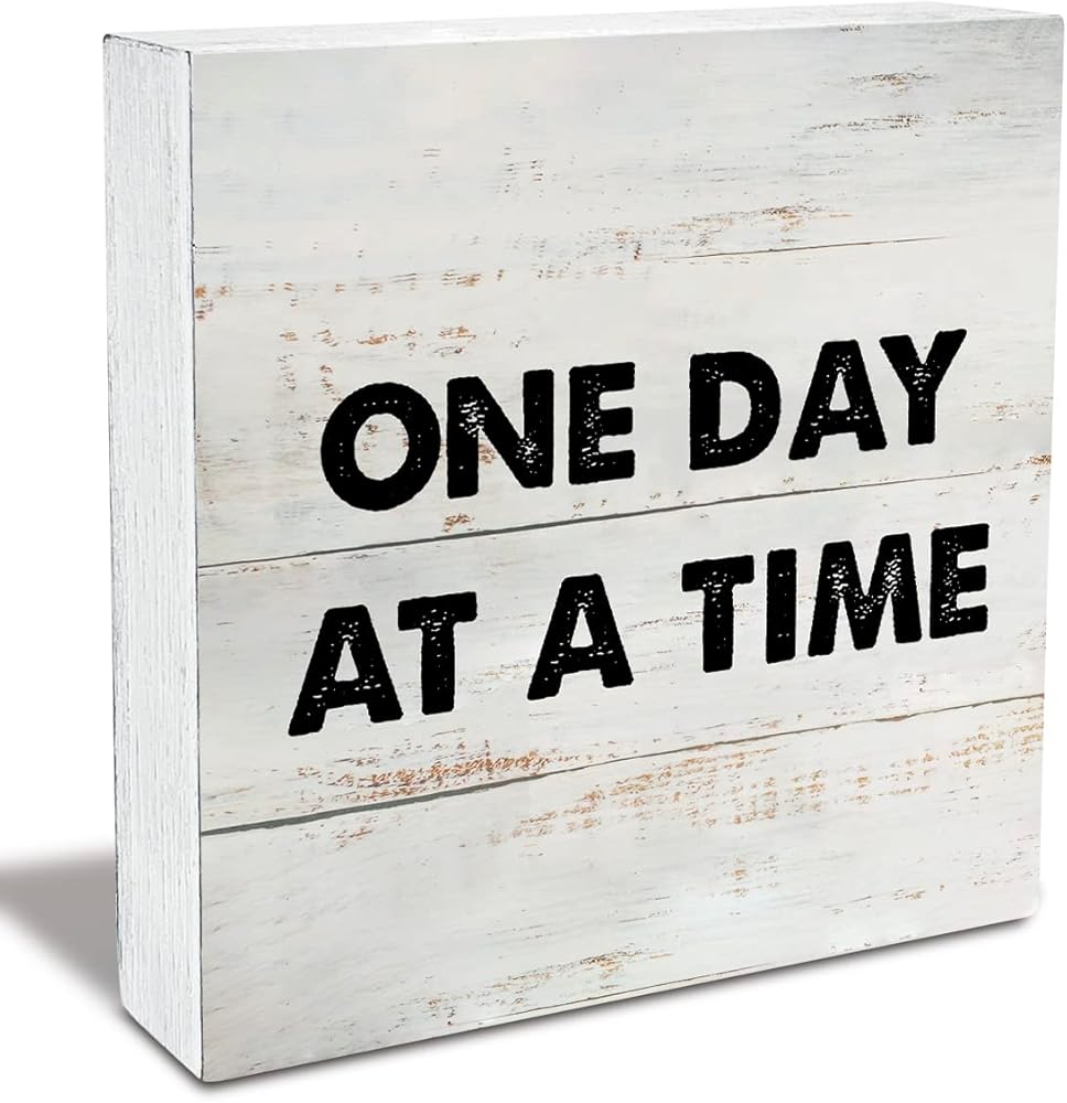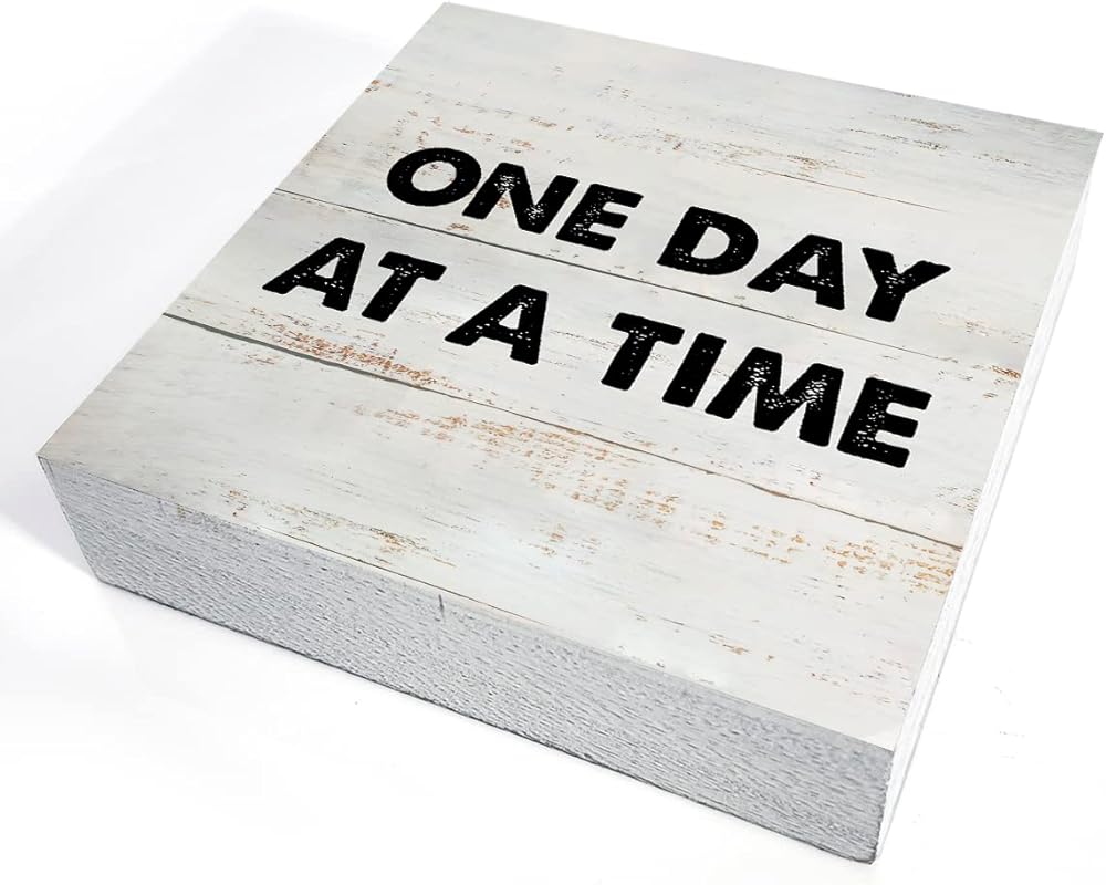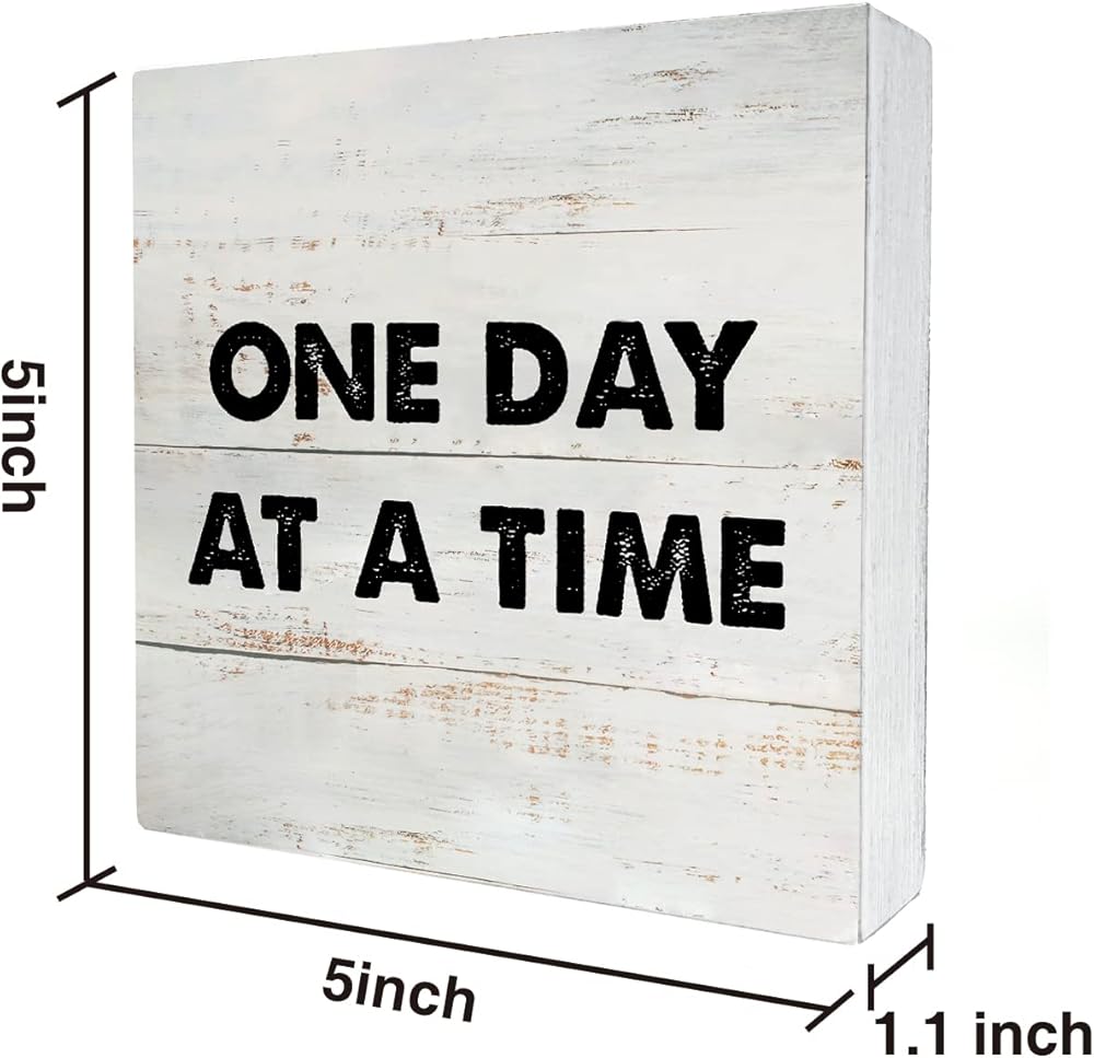 ريفي تحفيزي يوم واحد في كل مرة صندوق خشبي علامة تشجيع الانتعاش هدية صندوق خشبي علامة مزرعة المنزل مكتب مكتب الرف ديكور (5 × 5 بوصة)